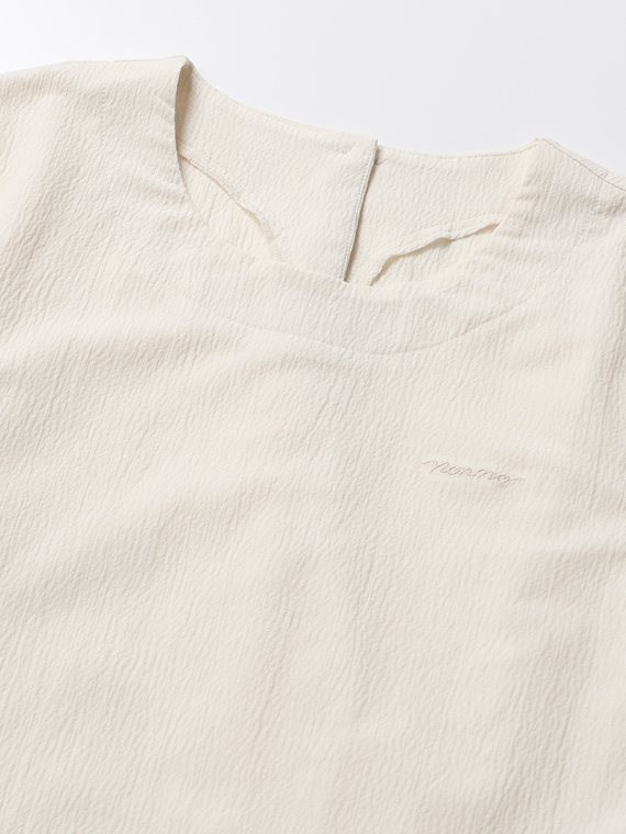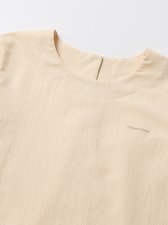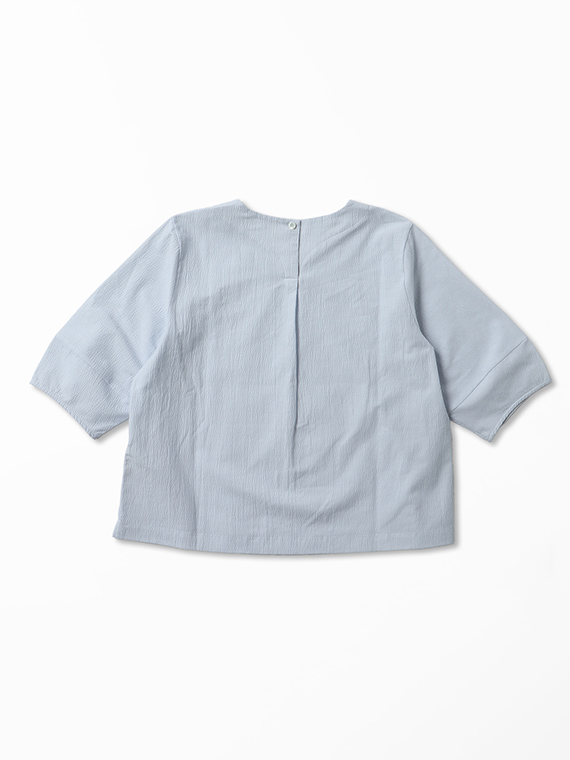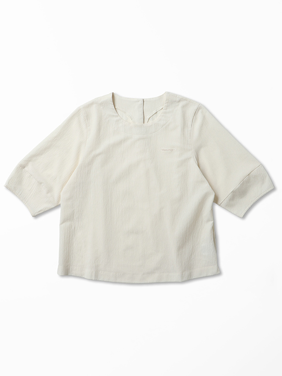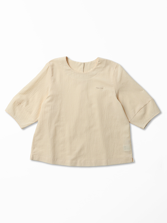 切り替えを入れたふんわり袖がやさしい表情を添える、着回しやすいアイテムです。