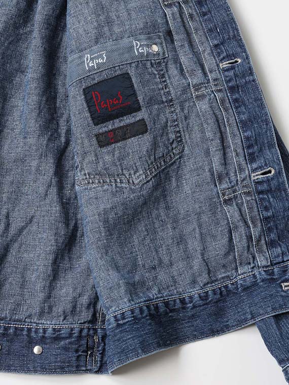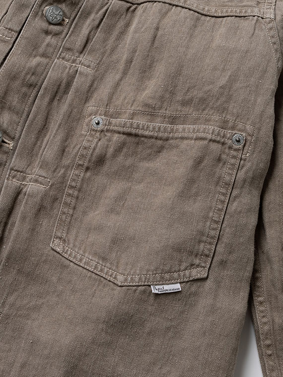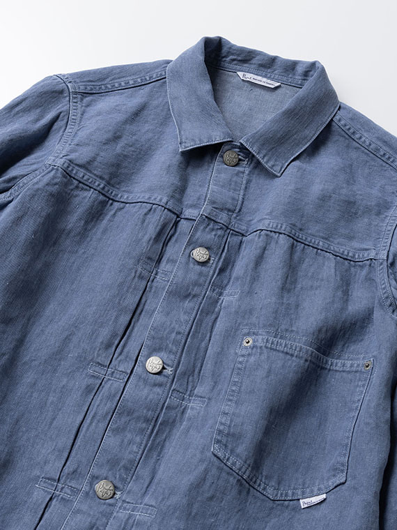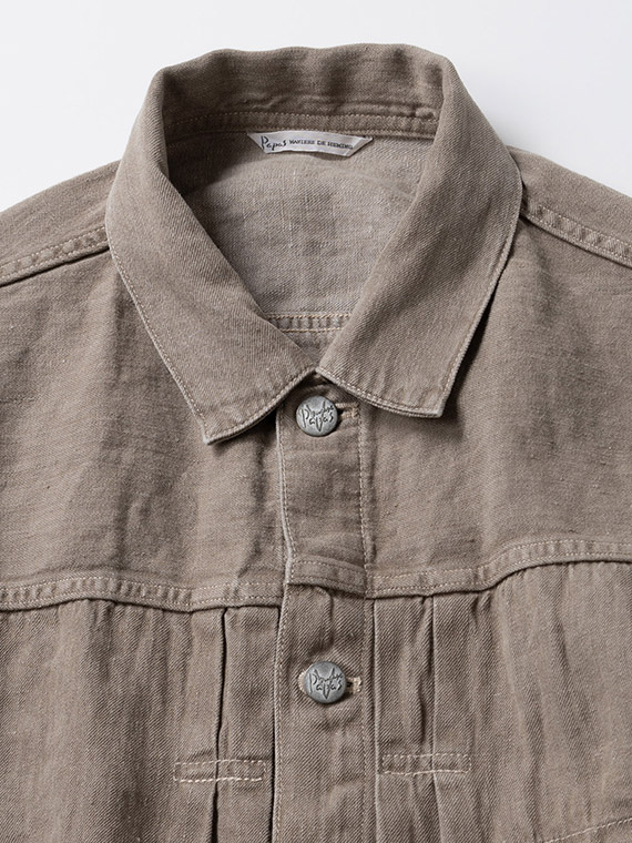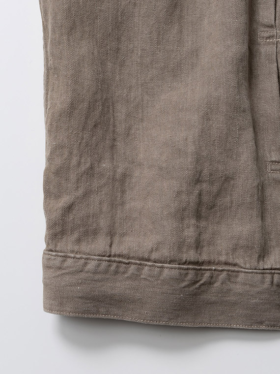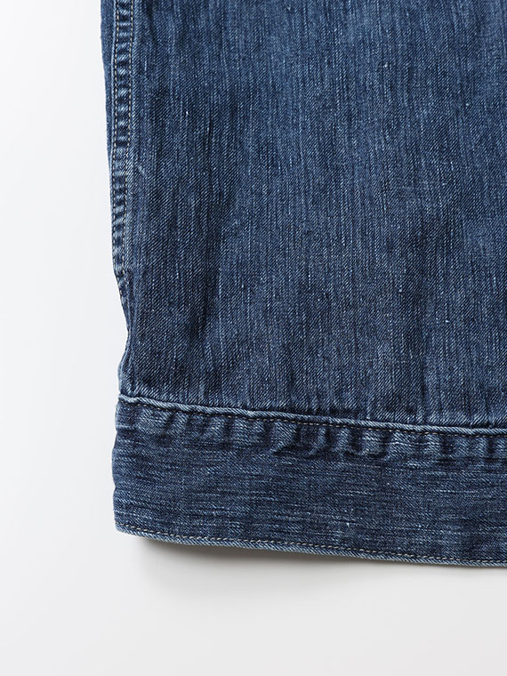 1/20×1/44のノルマンディリネンを使用した10ozの高密度リネンデニム素材です。経糸には1/20、緯糸には1/44のノルマンディリネンを使用し、しっかりとした肉感を持ちながら、リネン特有の清涼感とドライなタッチを兼ね備えています。