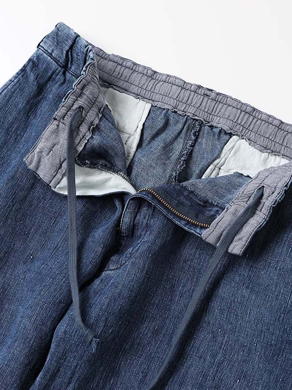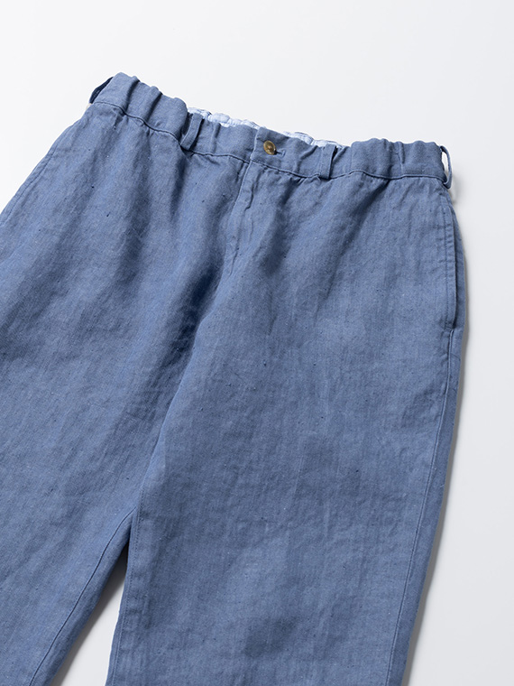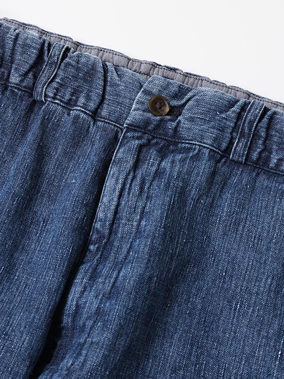 1/20×1/44のノルマンディリネンを使用した10ozの高密度リネンデニム素材です。経糸には1/20、緯糸には1/44のノルマンディリネンを使用し、しっかりとした肉感を持ちながら、リネン特有の清涼感とドライなタッチを兼ね備えています。
