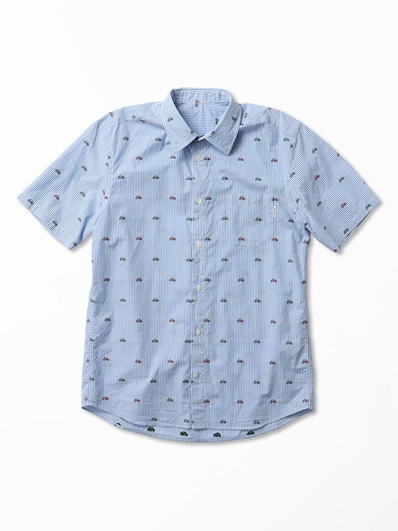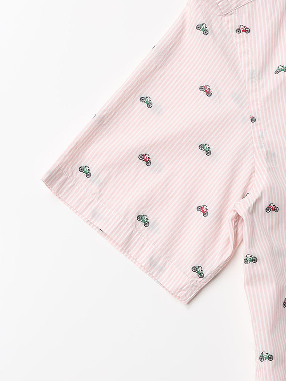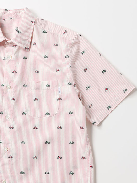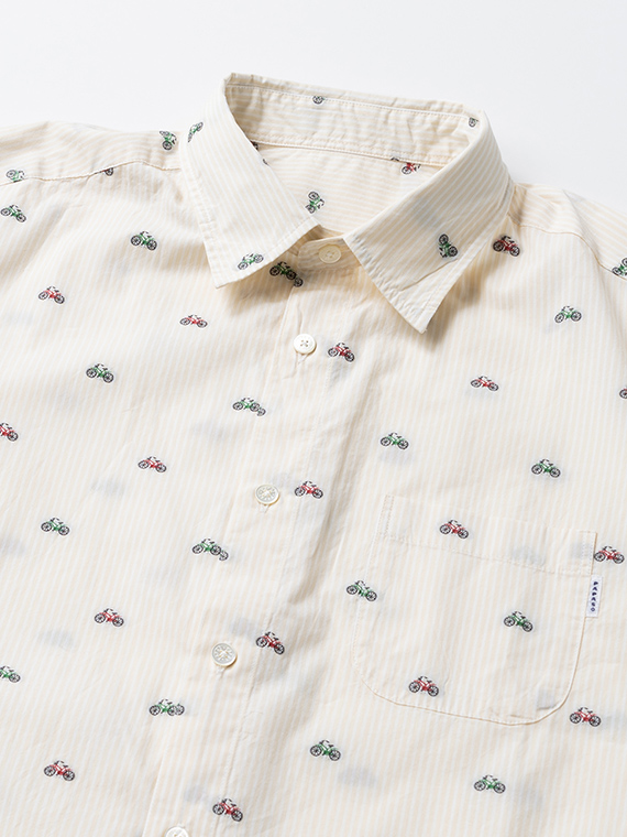 コットンポプリン カットジャガード 自転車柄 半袖シャツ