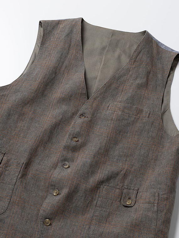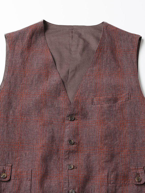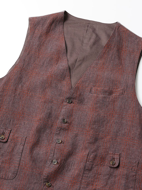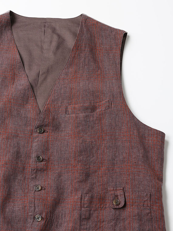 <LEOMASTER>LINEN DELAVE MIX CHECK ベスト