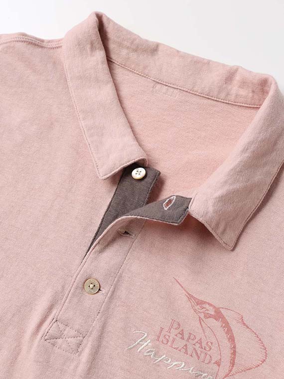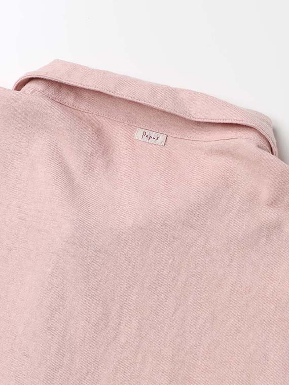 共衿仕様のベーシックなポロデザインで、前立ては3つ釦あき。前立て部分にはさりげない配色を施し、カラーごとに異なるアクセントを添えています。裾脇にはスリットを入れることで動きやすさにも配慮し、シンプルな中に遊び心を感じさせるディテールが魅力です。