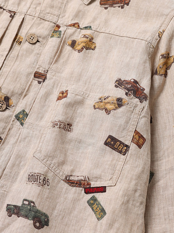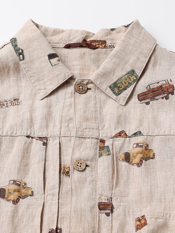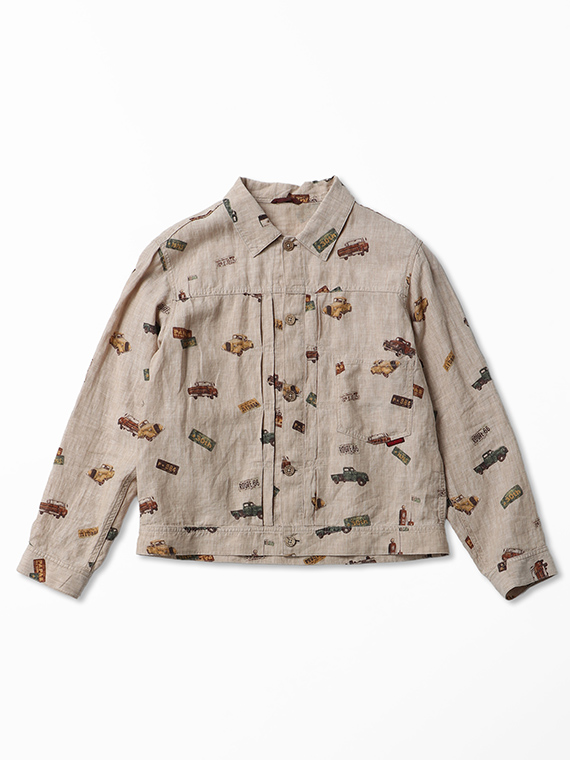 リネンプリント ピックアップトラック ショート丈ブルゾン