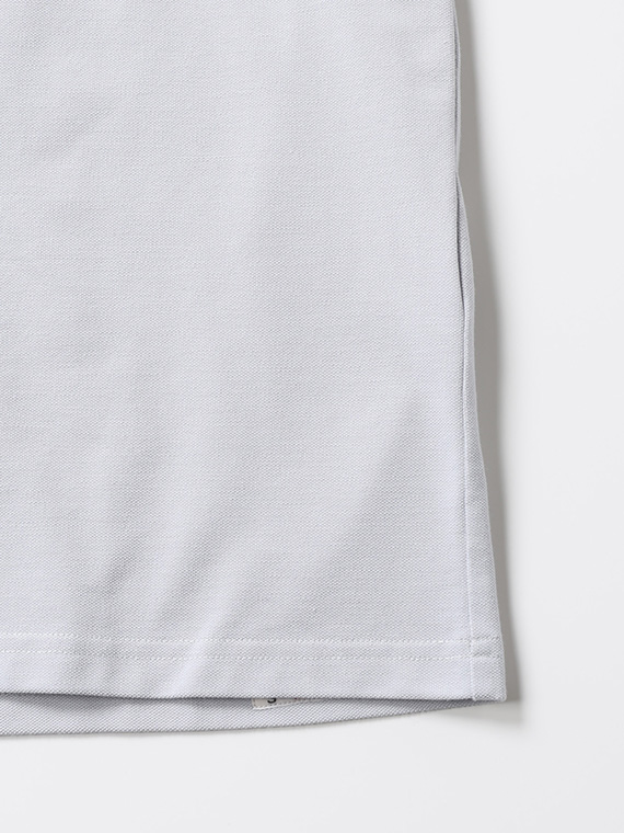 綿とポリエステル(クールマックスエコメイド)を混紡した糸を使用した鹿の子素材です。糸を異形断面構造にすることで高い吸水性と速乾性を備え、汗を吸収しながら蒸れやべたつきを抑え、ドライな着心地を保ちます。