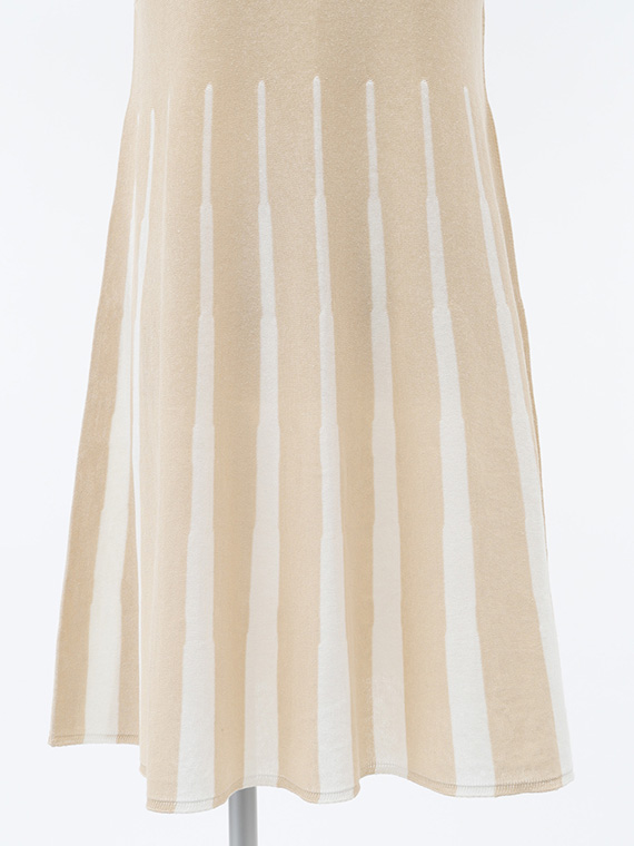 編み地の中にオフを効果的に配することで、まるで本物のプリーツが畳まれているかのような立体感を表現しました。