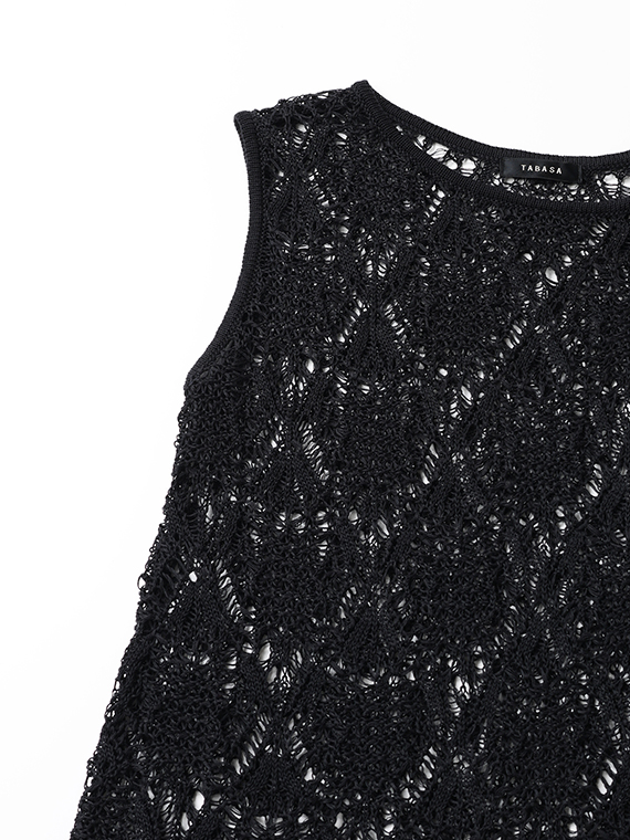 レース編みの隙間からインナーの色がのぞき、奥行きのある洗練されたスタイルを演出してくれます。