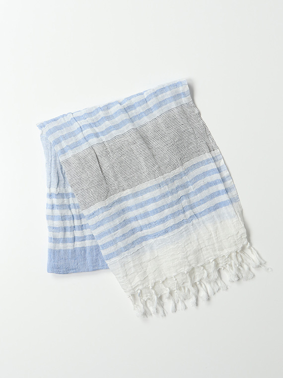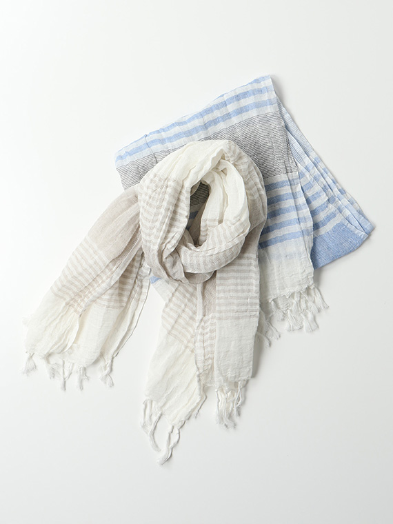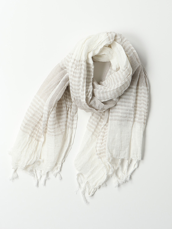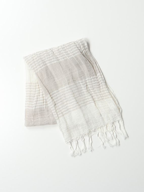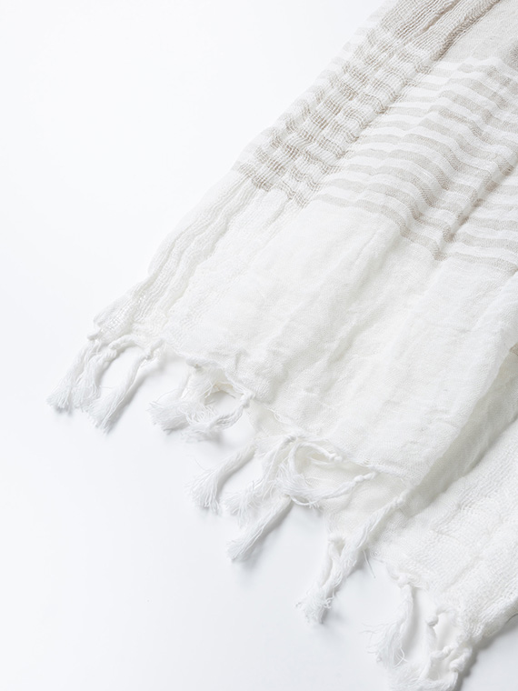 両端には本体をほどいて結んだフリンジがつき、麻ならではのナチュラルな雰囲気で仕上げています。