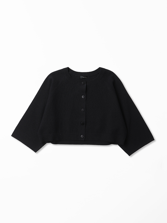最大の特徴は、ウエストまでのショート丈で仕上げたことで、コンパクトにまとまった丈感は、ボリュームのあるワイドパンツや、ゆるやかに広がるAラインのワンピースやチュニックと相性が抜群です。