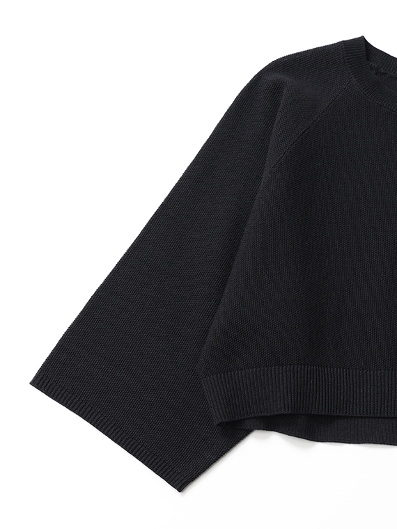 肩回りにゆとりを持たせたラグランスリーブを採用しているので、腕の動かしやすさはもちろん、肩のラインを華奢に見せてくれるうれしい効果もあります。