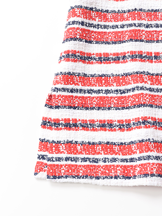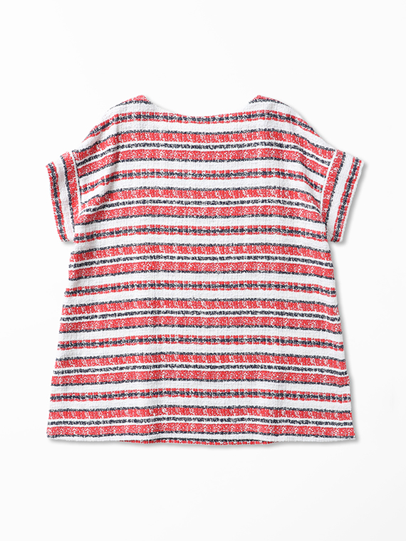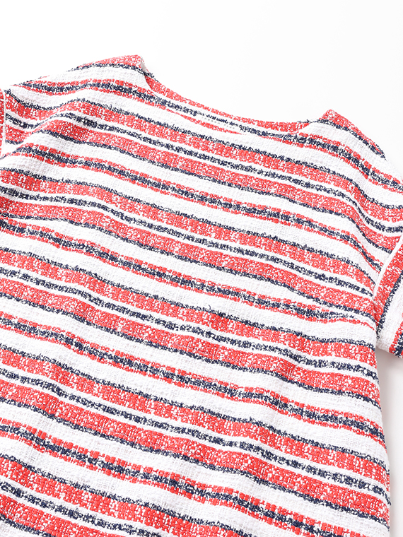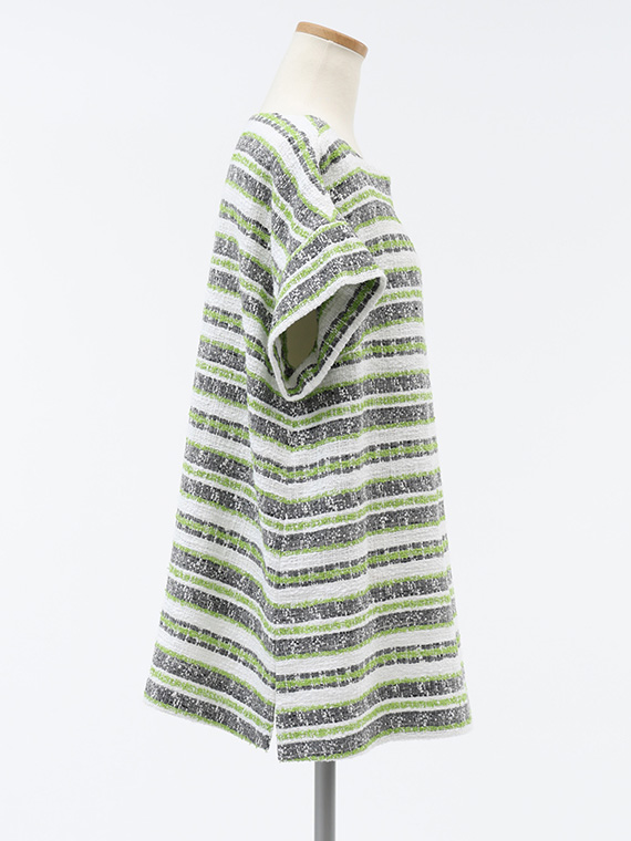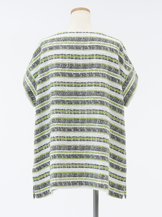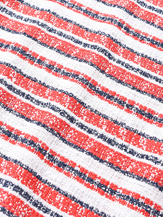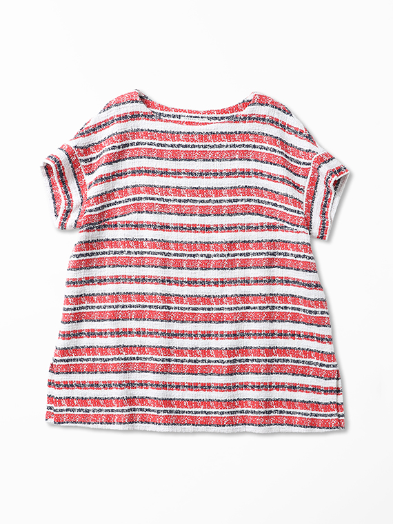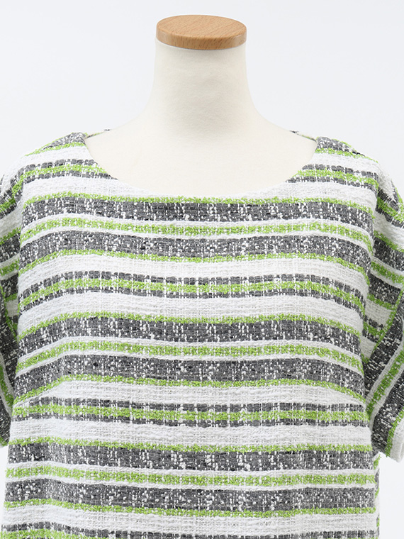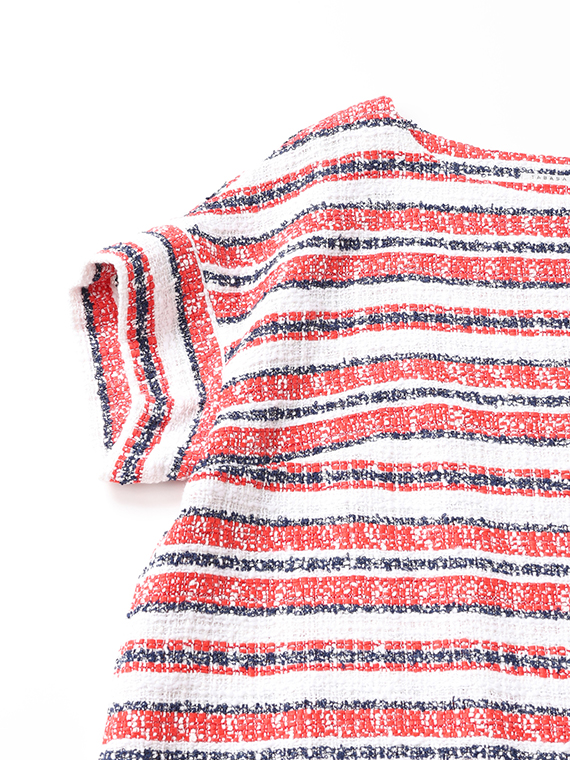 タテ糸とヨコ糸に節のある「スラブ糸」を、さらにヨコ糸にはポコポコとした表情豊かな「リング糸」を織り交ぜることで、機械的ではないやわらかく、温かみのあるボーダーを描き出しました。