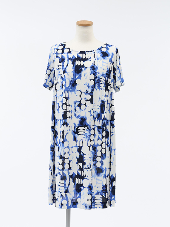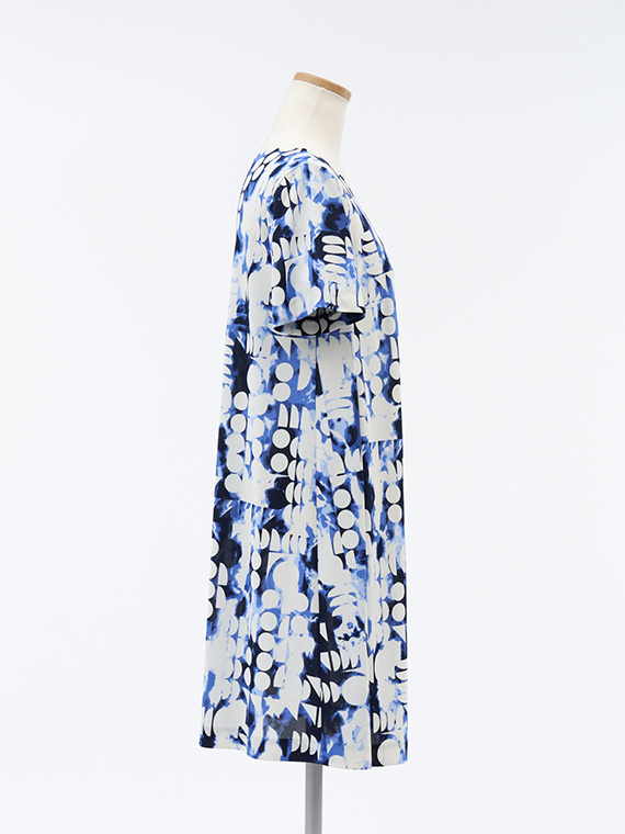 タイダイ(絞り染め)のようなニュアンスのあるベースに、大小のドットがまるで水面に浮かぶ泡のようにランダムに描かれています。