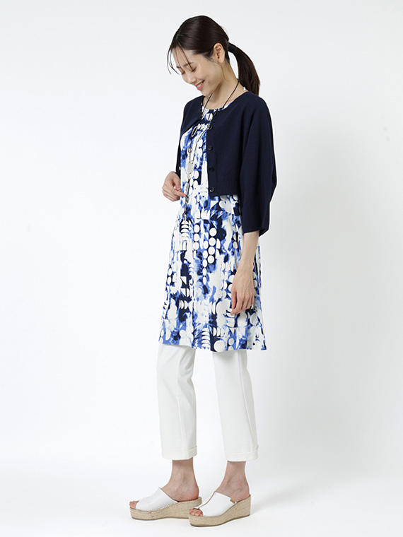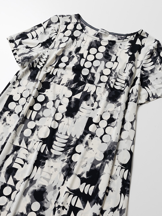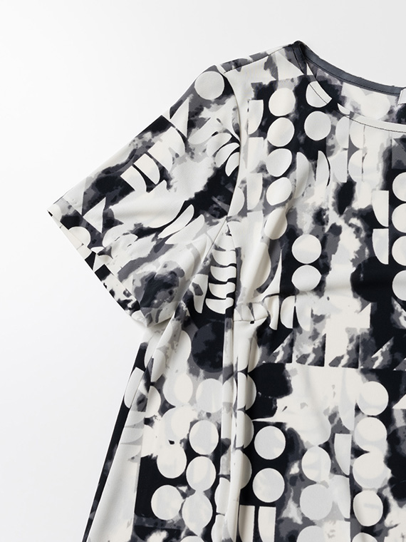 単なる水玉模様ではない、奥行きとリズムのあるモダンな表情が、大人のカジュアルをクラスアップさせてくれます。
