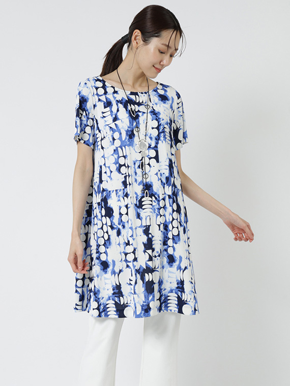 「タバサといえばこれ」という、ブランドのアイデンティティが凝縮された王道のAラインチュニックです。