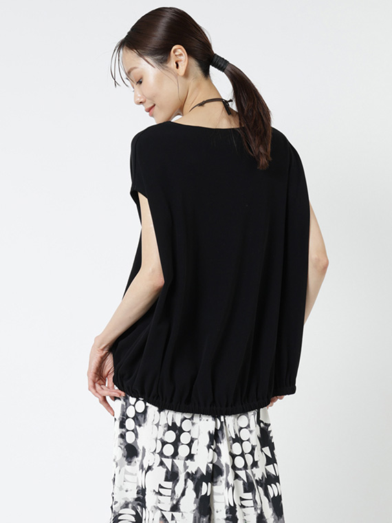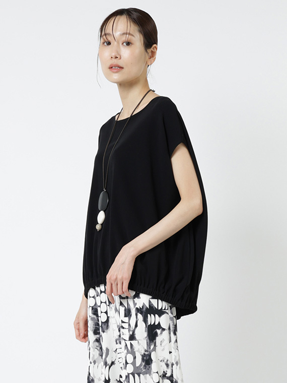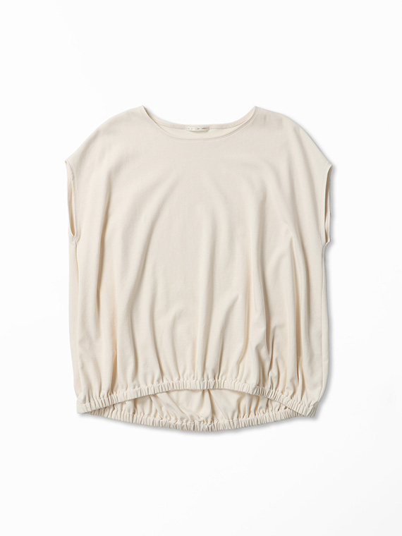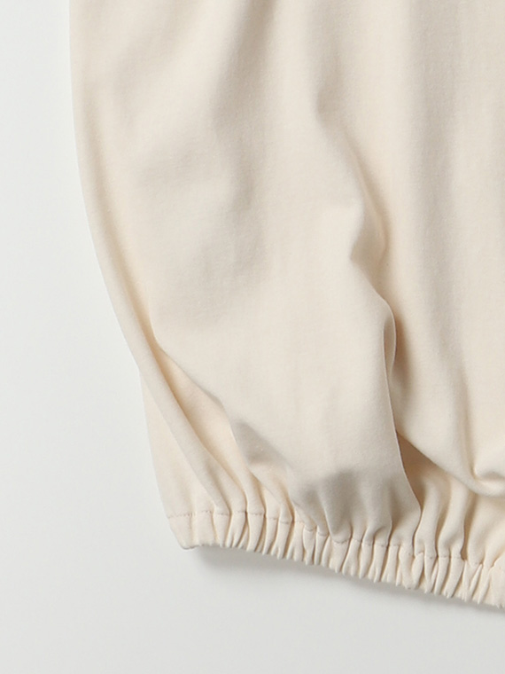 一番のポイントは、裾にぐるりと通したゴム仕様です。サッと着るだけで、ウエスト周りに自然な「ブラウジング(ふくらみ)」が生まれ、面倒なタックインの手間なしで、一瞬で理想のシルエットが決まります。