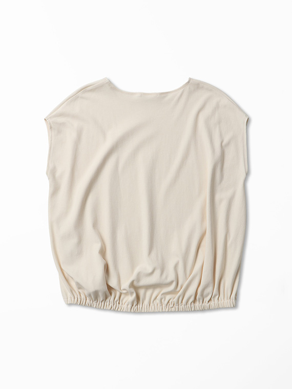 肩口をそっと包み込むようなフレンチスリーブは、二の腕を露出しすぎず、それでいてノースリーブのような清涼感を叶えてくれる絶妙なライン。
