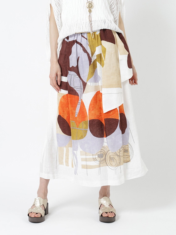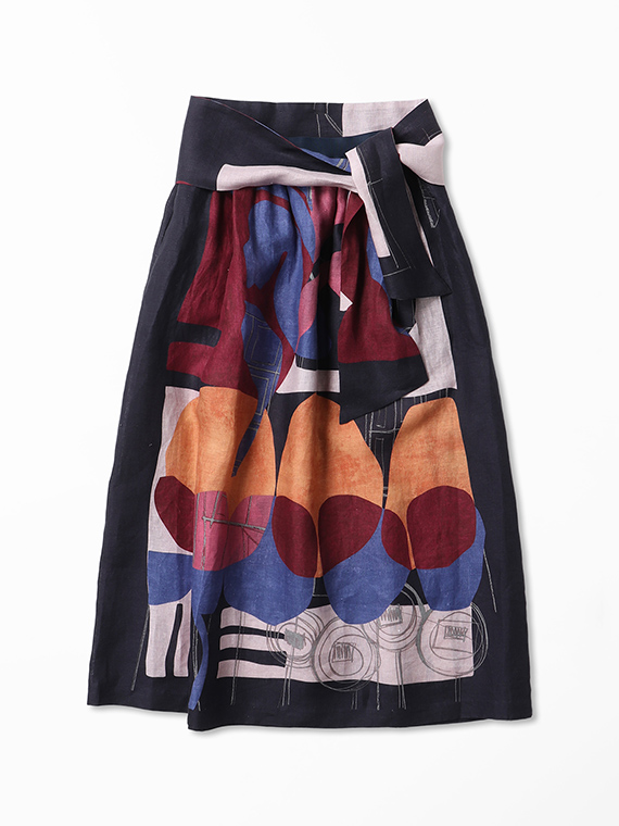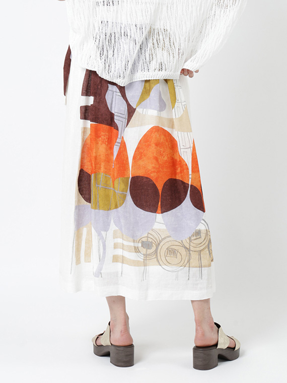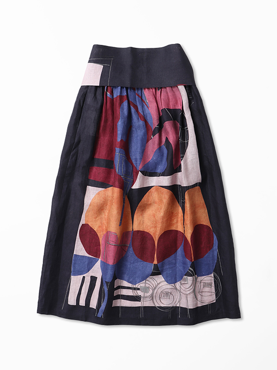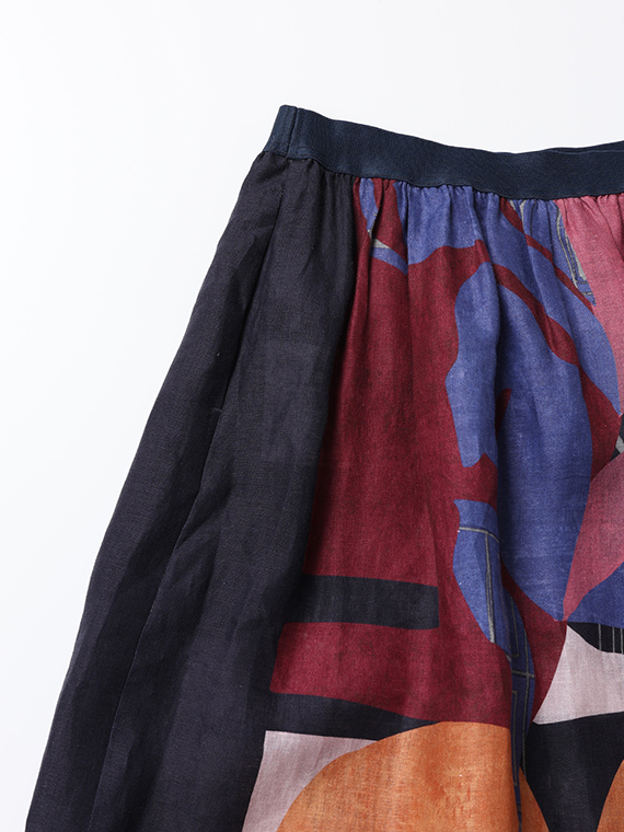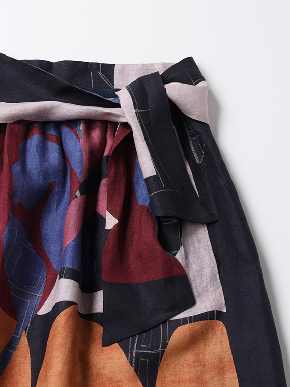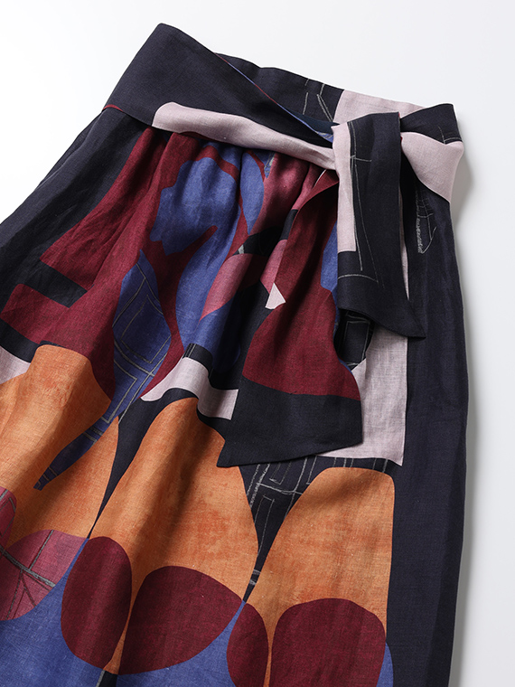 大胆で美しい柄を存分に堪能していただくため、デザインはあえてシンプルに徹したスカートです。