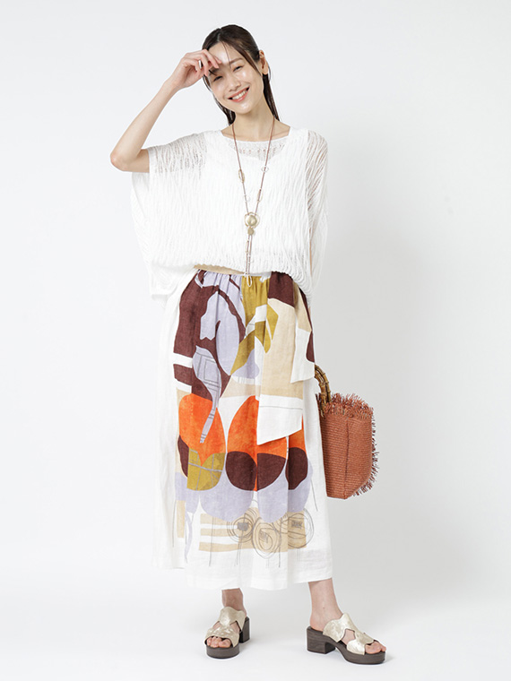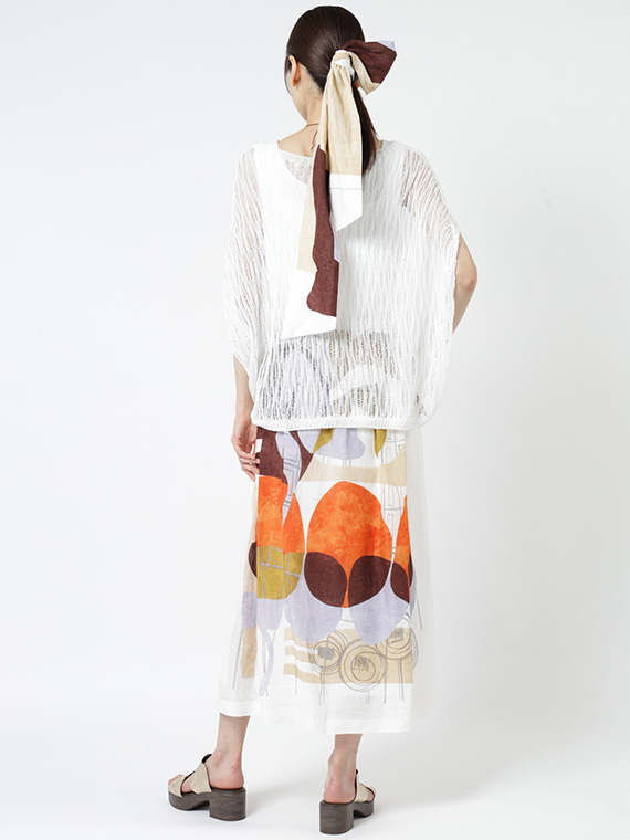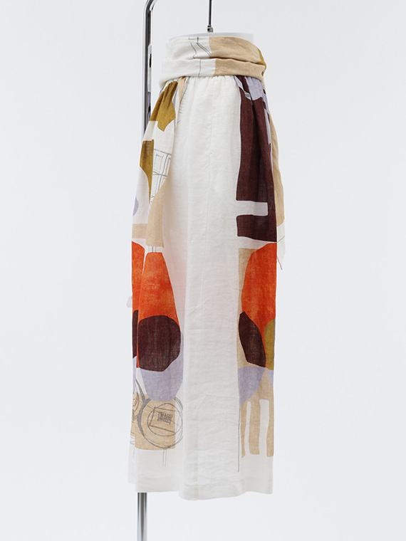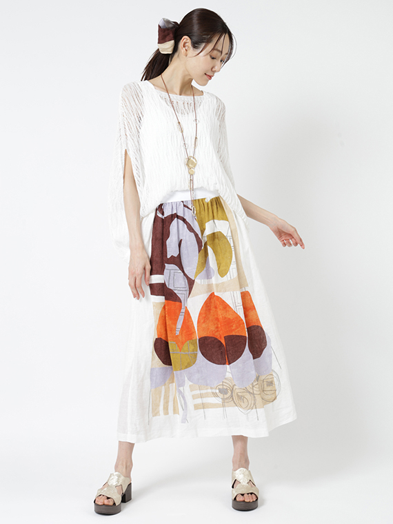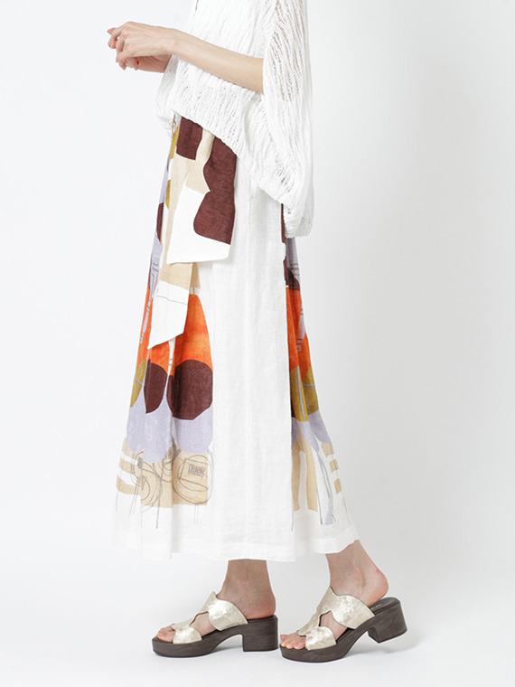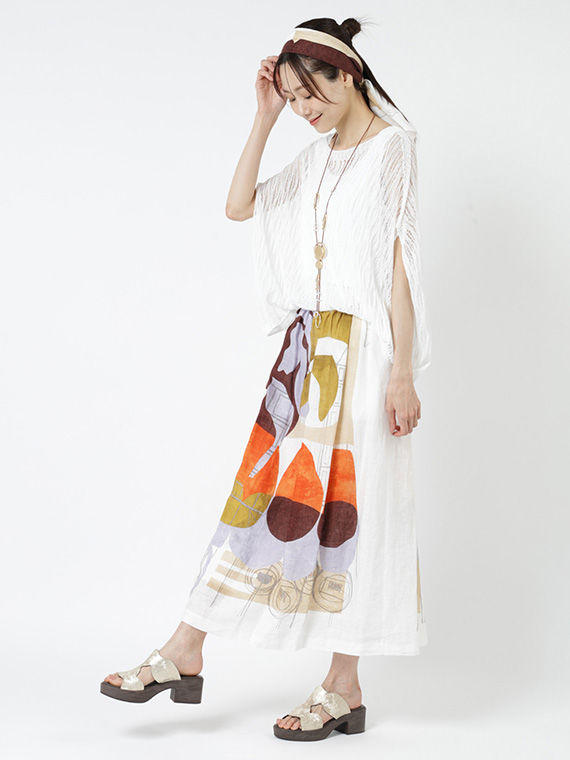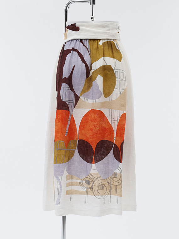 大胆で美しい柄を存分に堪能していただくため、デザインはあえてシンプルに徹したスカートです。