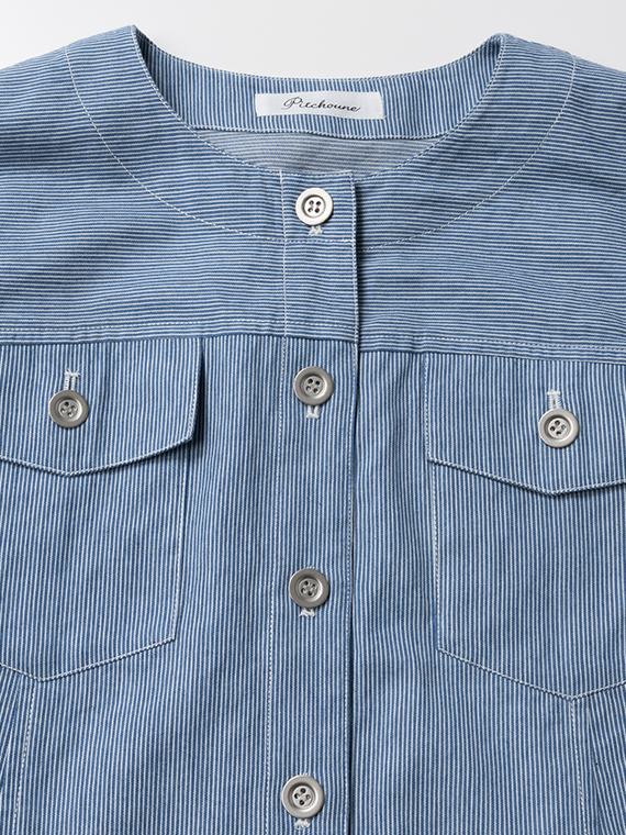 また、衿元をノーカラーにすることで、首回りに抜け感が生まれ、マニッシュさと遊び心が同居した、タバサらしい小粋な羽織りものに仕上げました。