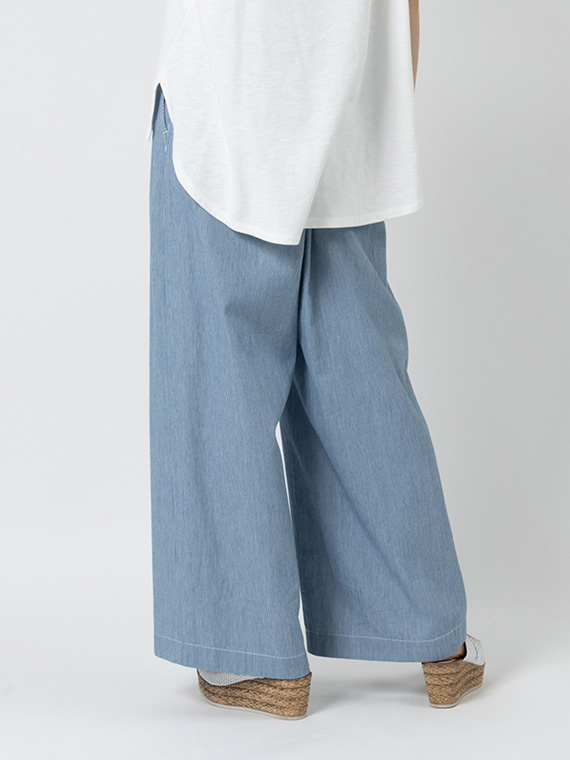 その一方で、後ろウエストはゴム仕様で、一日中ストレスフリーにお過ごしいただけます。