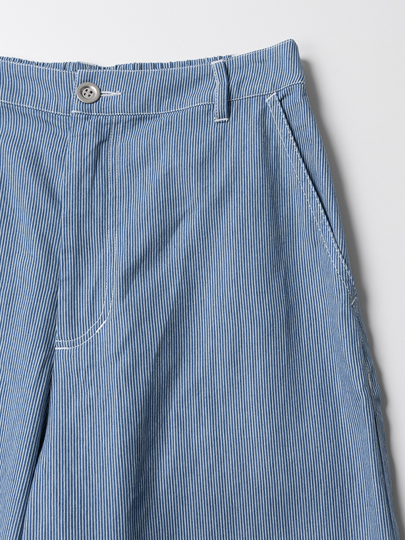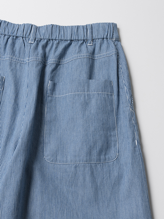 使用しているのは、キナリの糸とインディゴ染めした糸で織り上げた、本格的な先染めヒッコリーストライプデニム。