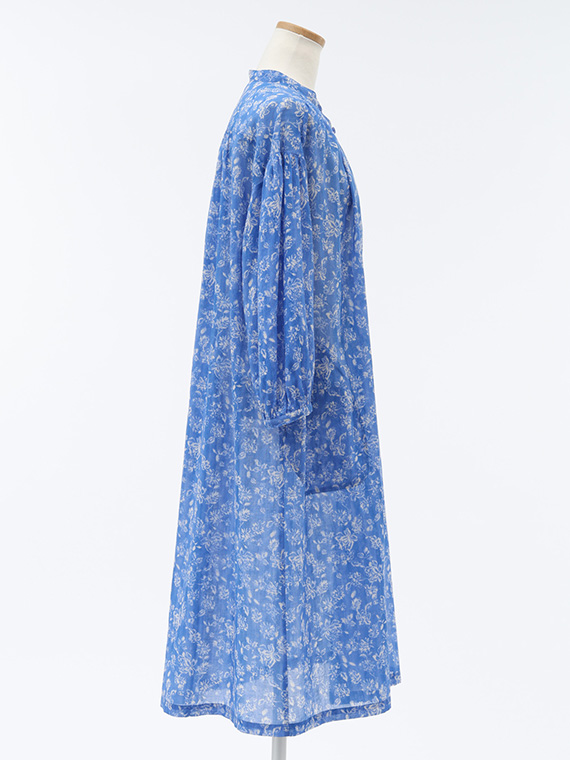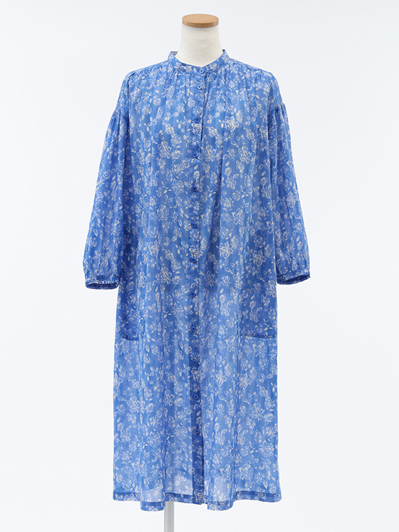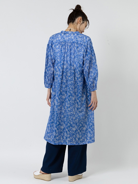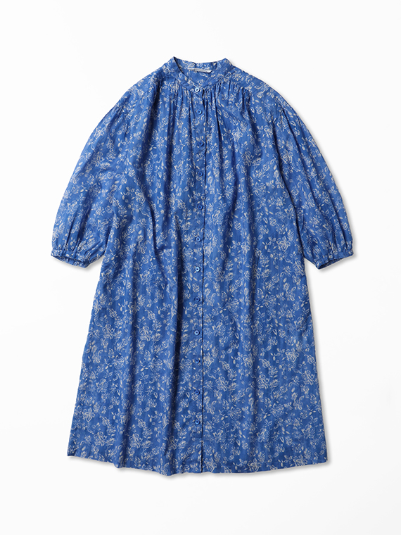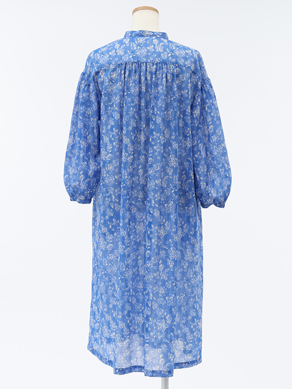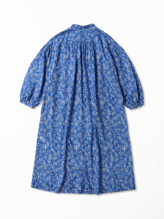 前後ともにヨーク切替を入れ、ヨーク下へふんだんにギャザーを施したワンピースです。