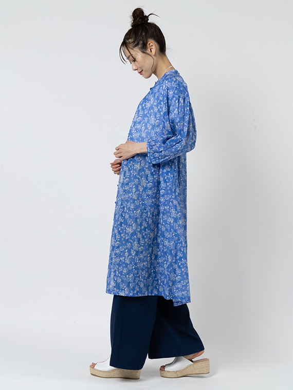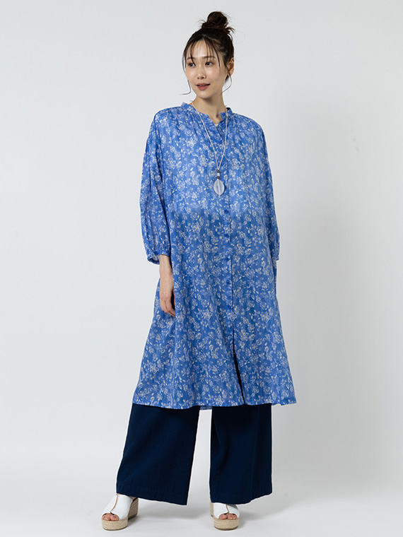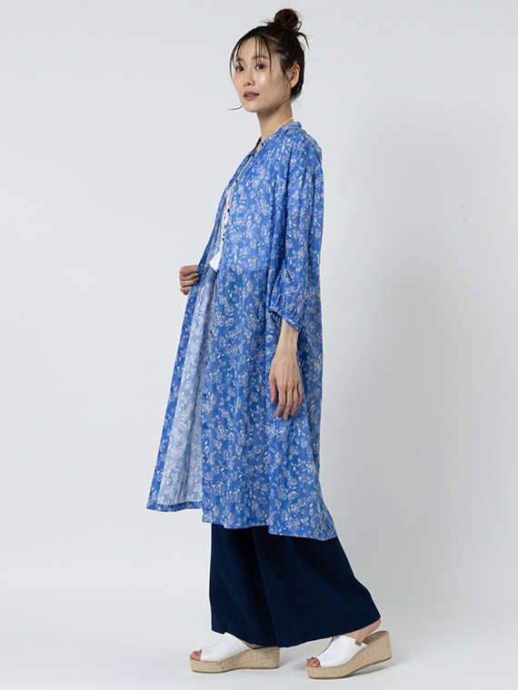また、前開き仕様ですので、ボタンを全て留めて清楚なロングワンピースとして着るのはもちろん、前をさっと開けて羽織りとしてお召しいただくのも素敵です。