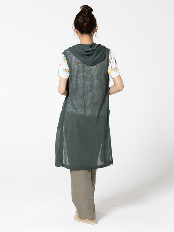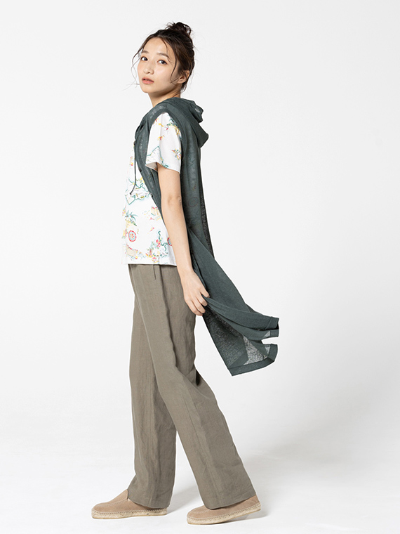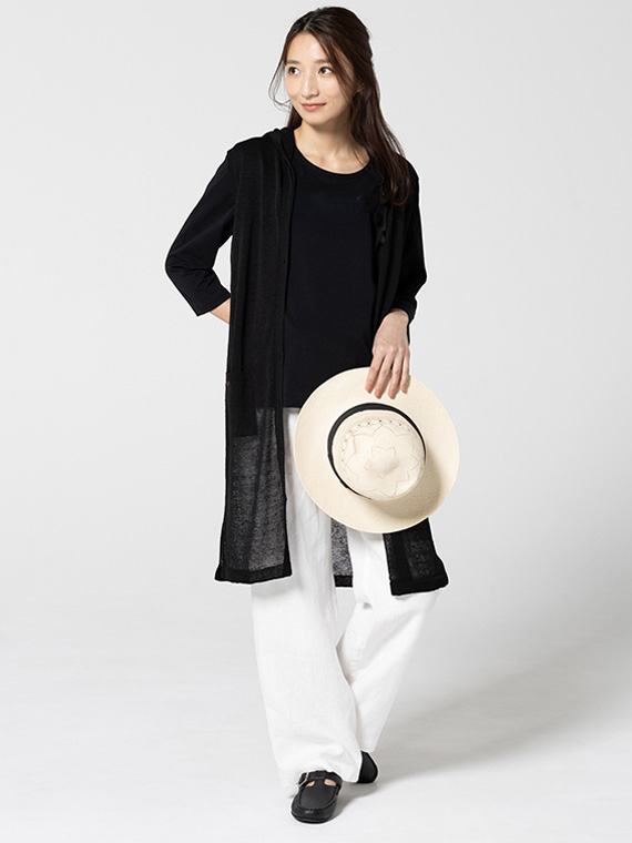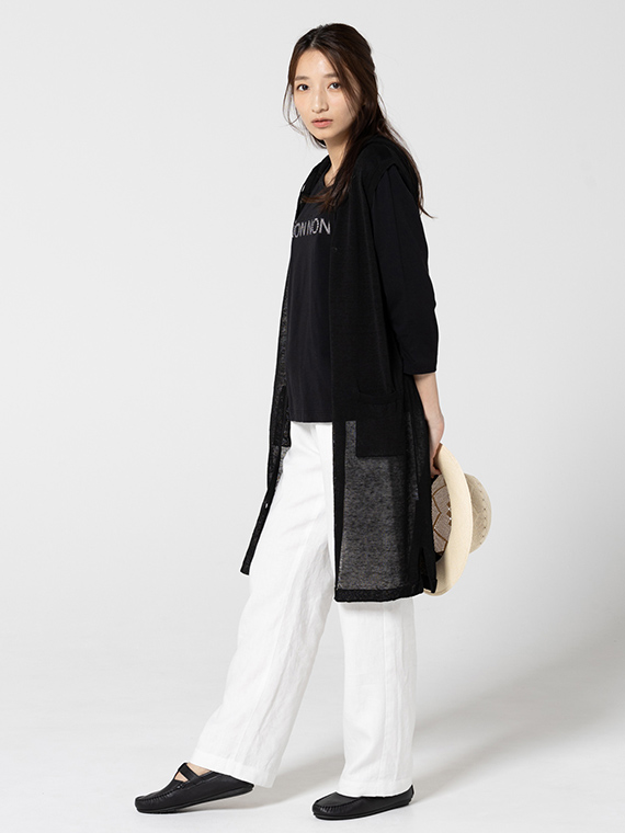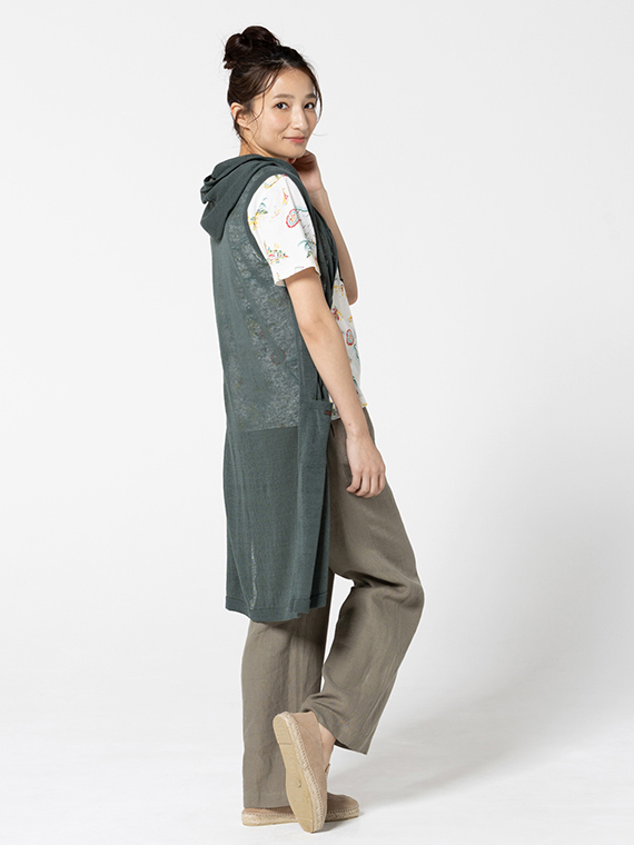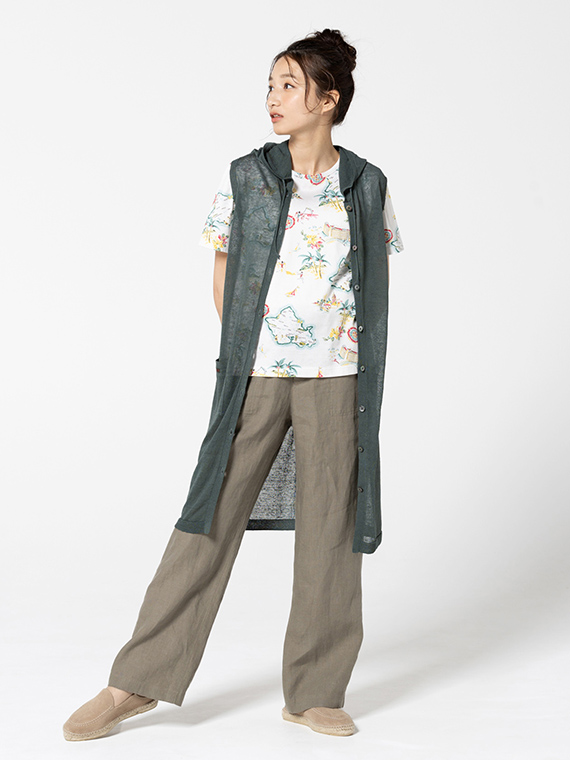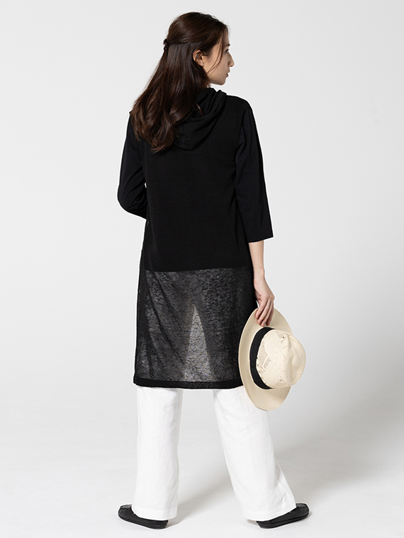 前開き仕様でレイヤードしやすく、夏の軽い羽織としても重宝します。手洗い可能でデイリーに使いやすいアイテムです。