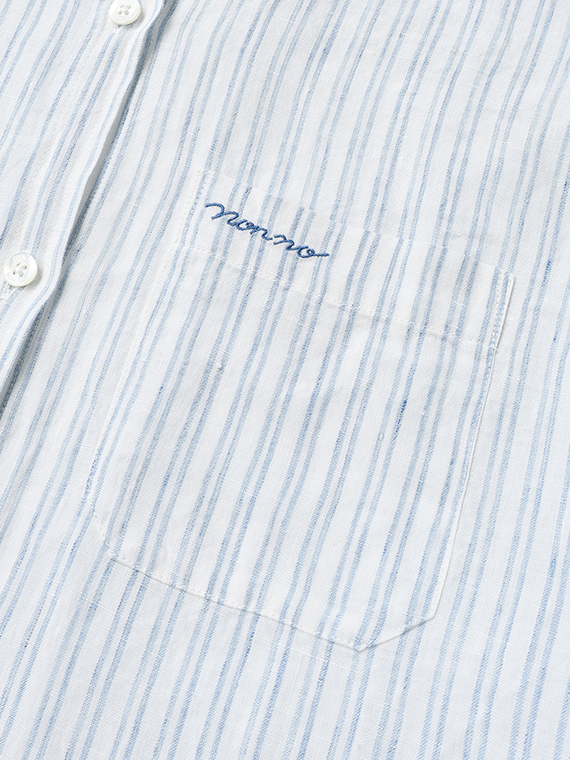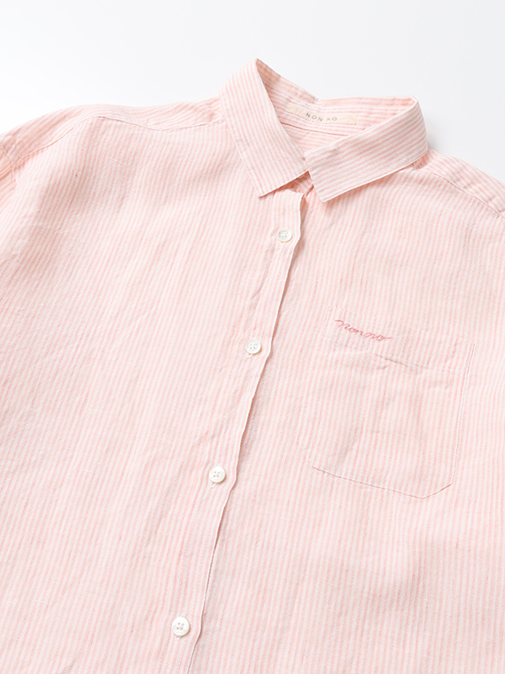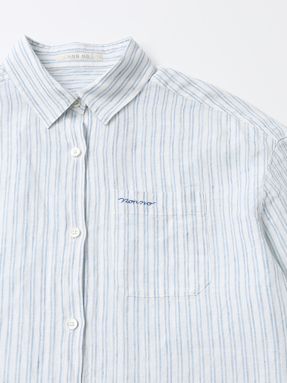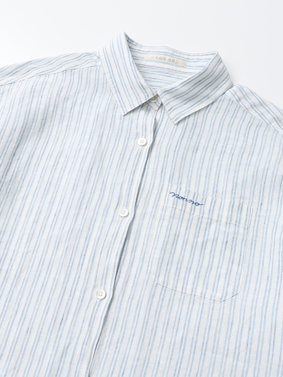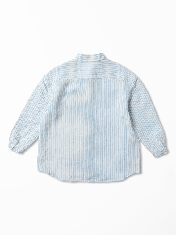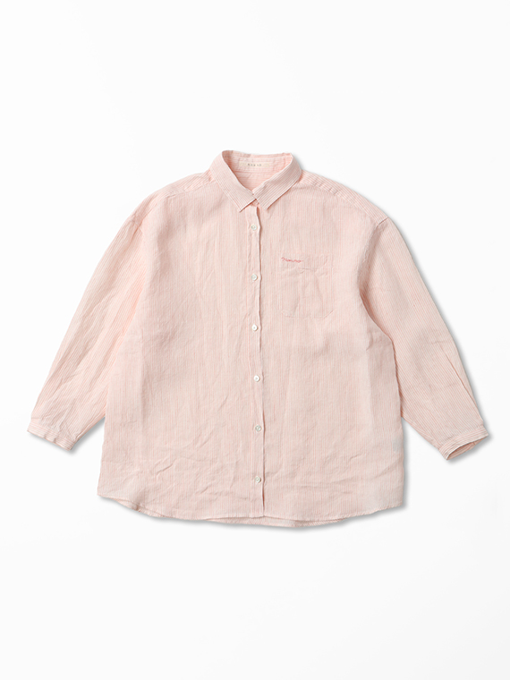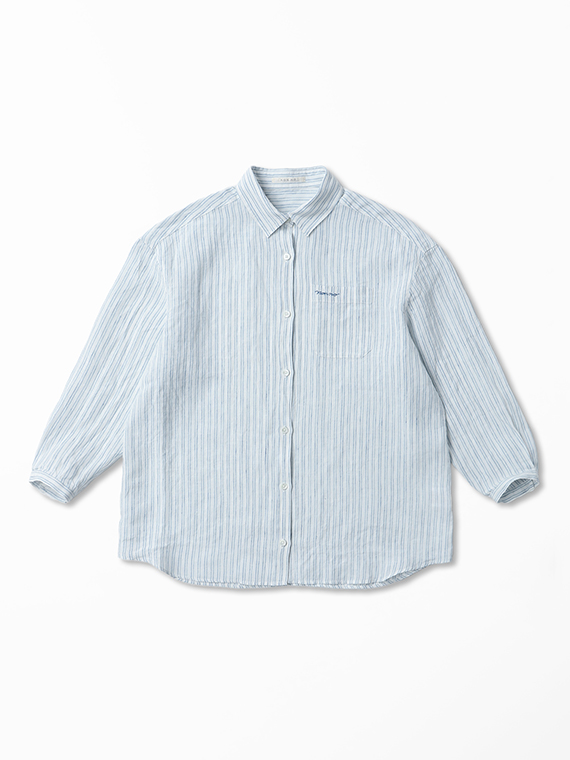 ノルマンディリネンムジ&ストライプ オーバーサイズシャツ[9分袖]
