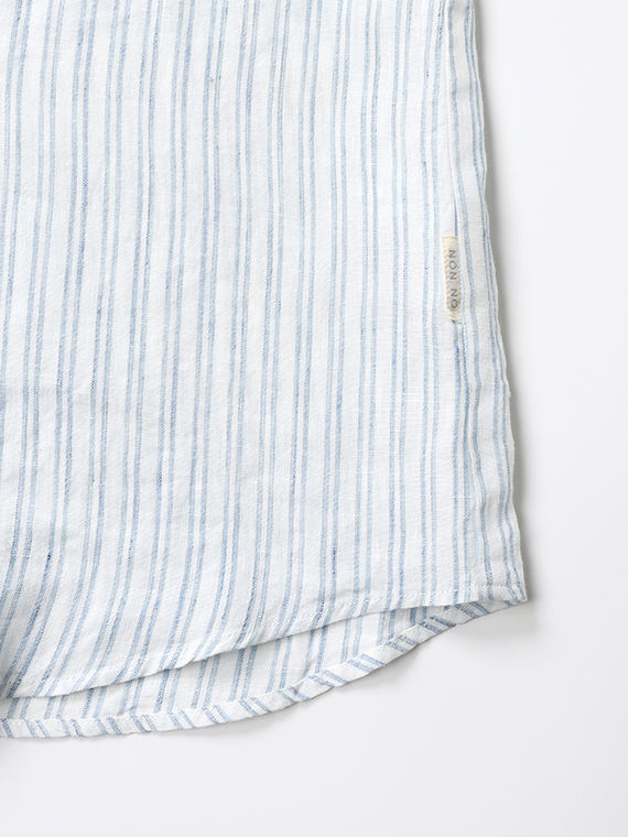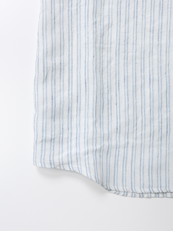 タテ・ヨコ糸共にフランスのノルマンディ地方産の原料を使用し織り上げられた平織の無地&ストライプ柄です。COL/2,3のストライプのカラー部分はTOP糸を使用しています。仕上げにはCC加工(揉み込みワッシャー)と言う、麻の風合いの良さを最大限に生かすワッシャー加工を施すことで、シャリ感の中に柔らかさを併せ持った仕上がりとなっています。