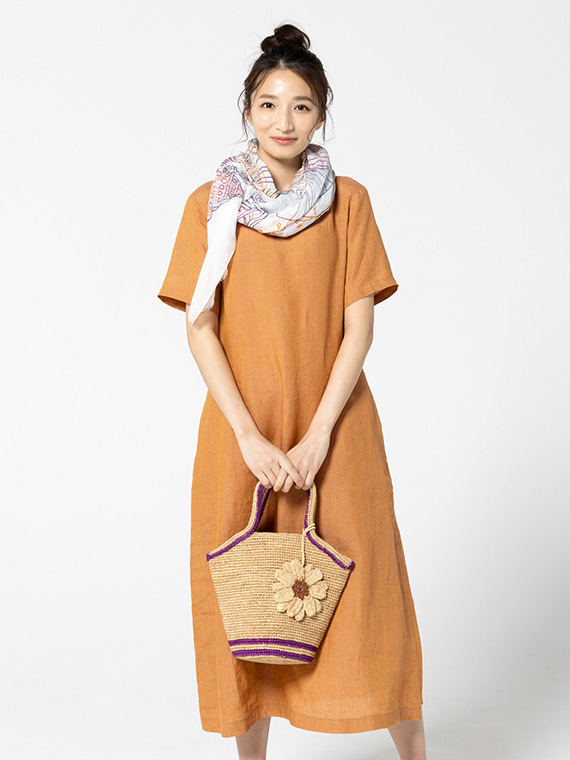 やさしいナチュラルカラーに差し色のラインが映え、夏の装いを明るくしてくれます。