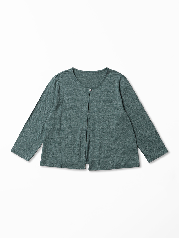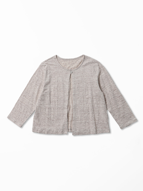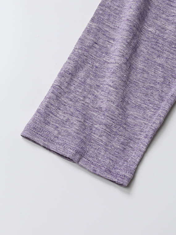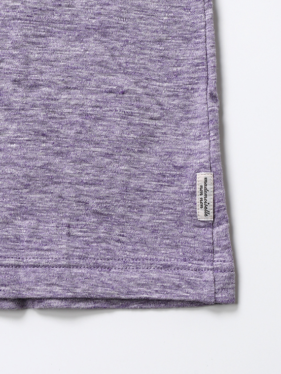 麻-100%の糸を使用しています。特殊加工を施す事で家庭洗濯が可能になりました。柔らかさを重視して何度も試験を重ねて作り上げた、オリジナルのリネン天竺です。麻の清涼感と特殊加工による柔らかさが特徴です。