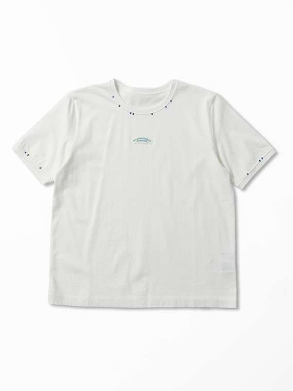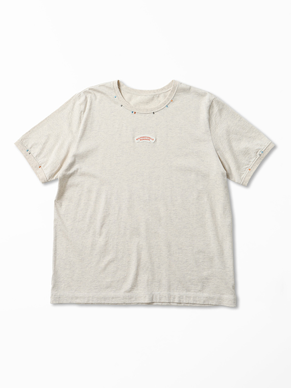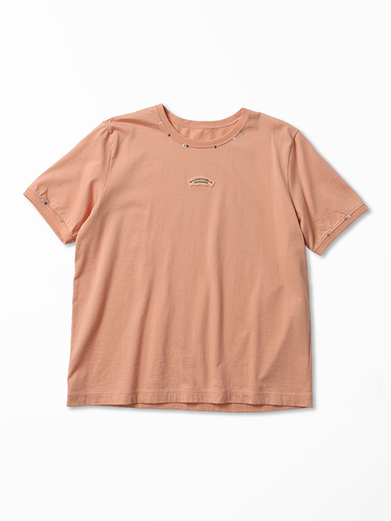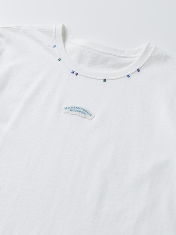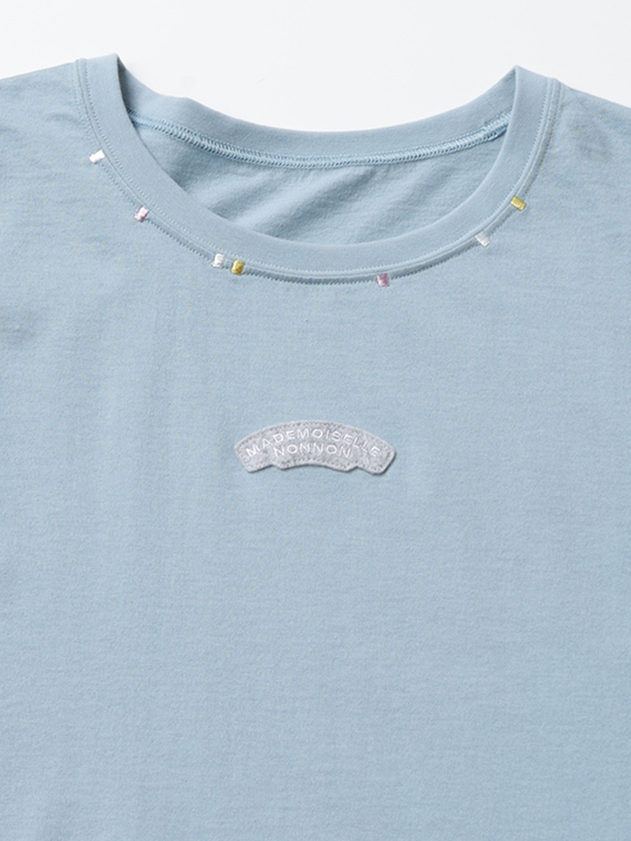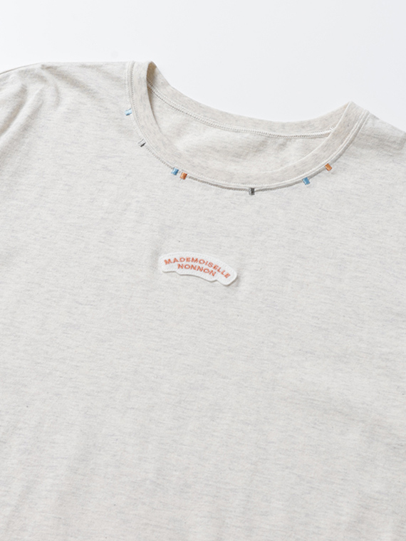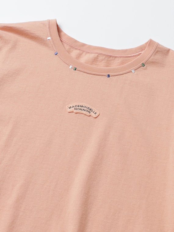 胸元にMADEMOISELLE NONNONのワッペンを配し、裾や袖まわりには3色のステッチ刺繍を施して表情豊かに仕上げました。さりげないデザインポイントで、デイリーコーデに取り入れやすいアイテムです。