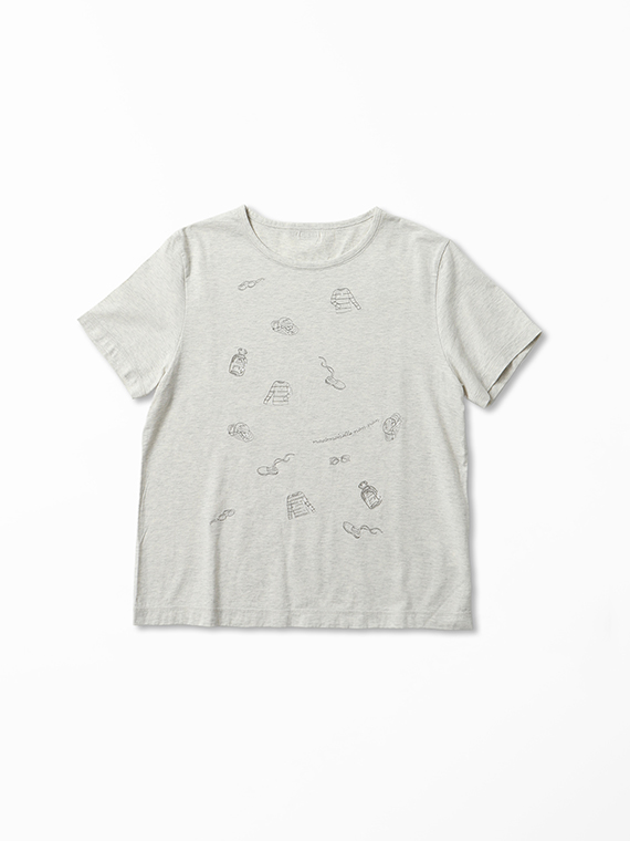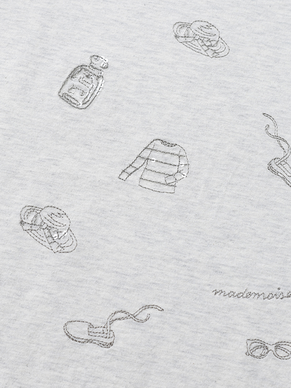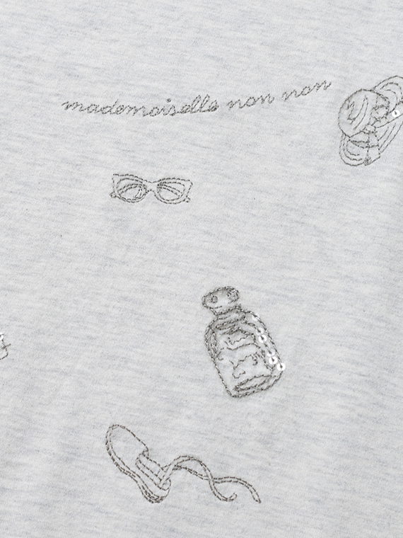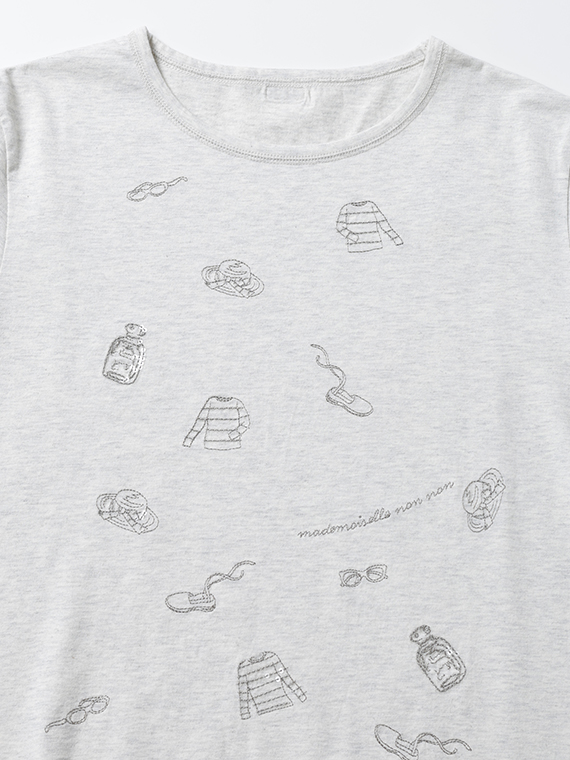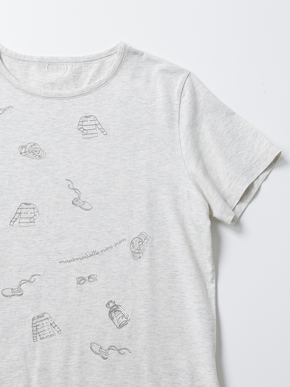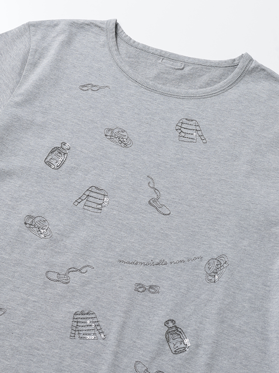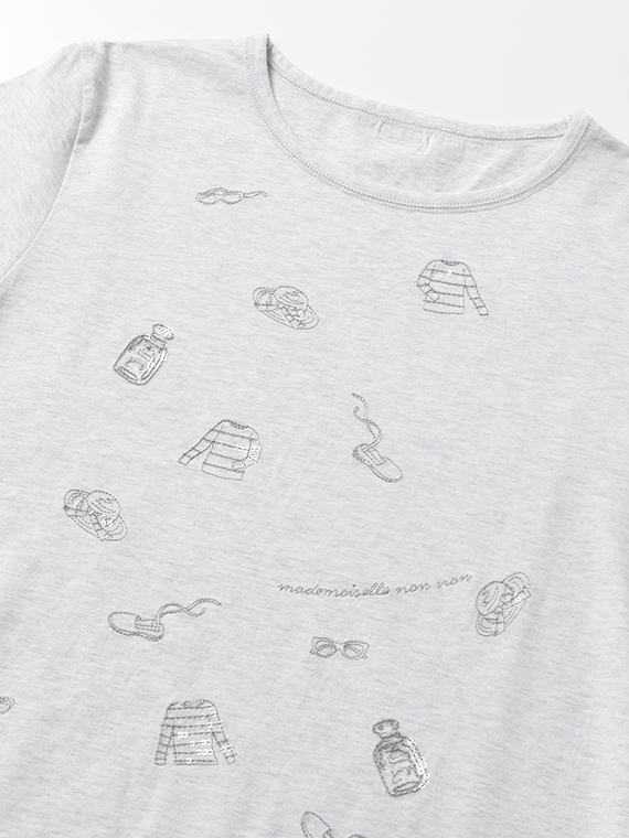 コンパクトヤーン天竺 サマーフレンチモチーフスパンコール刺繍Tシャツ