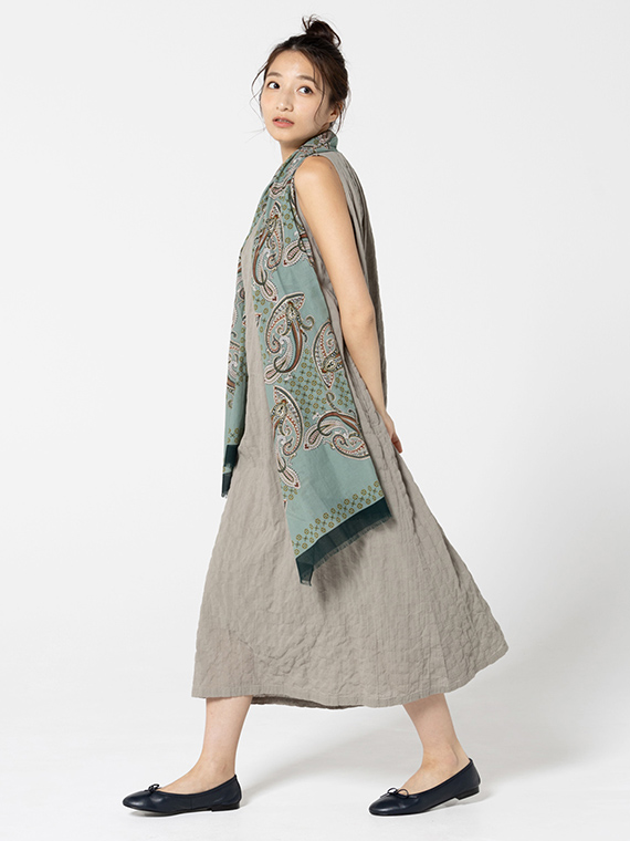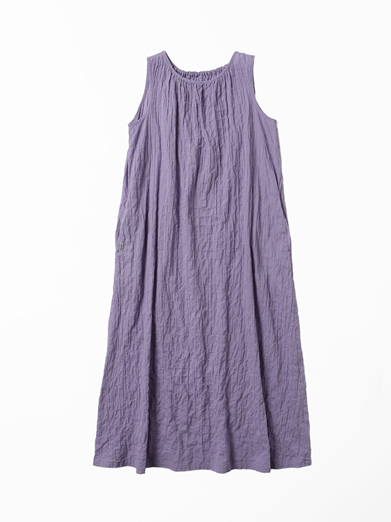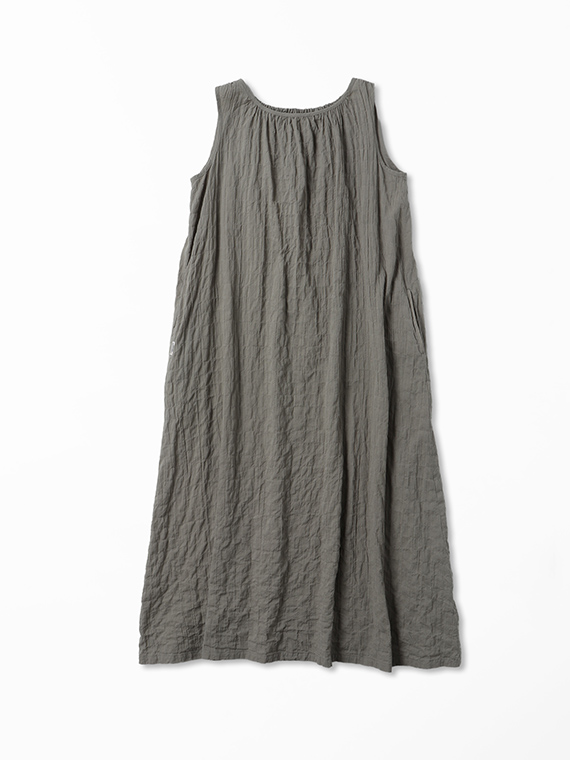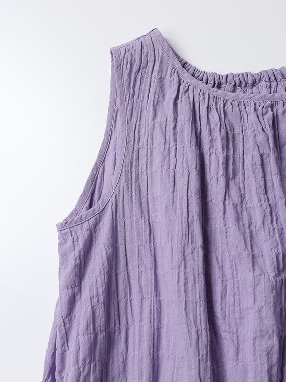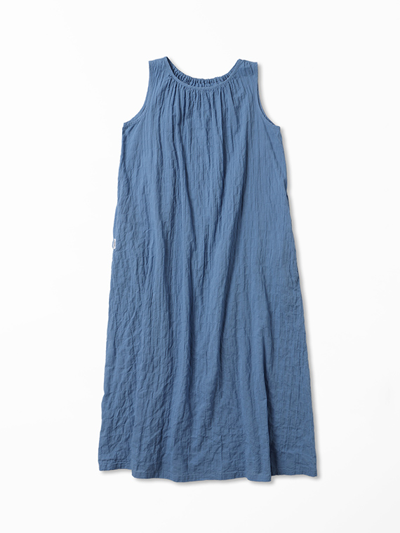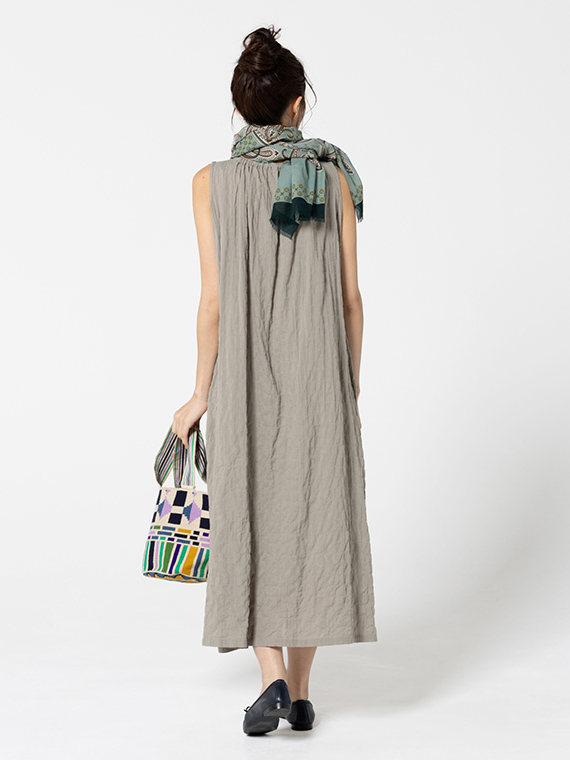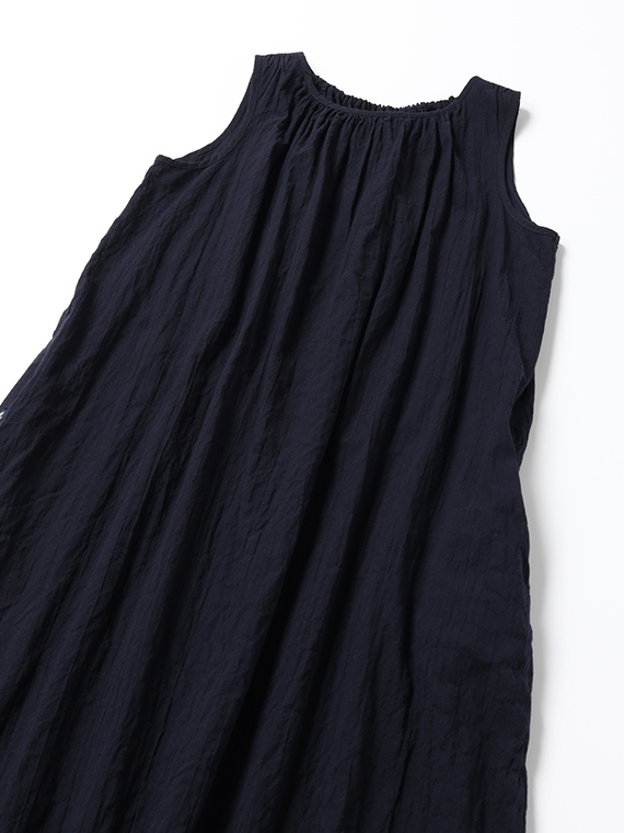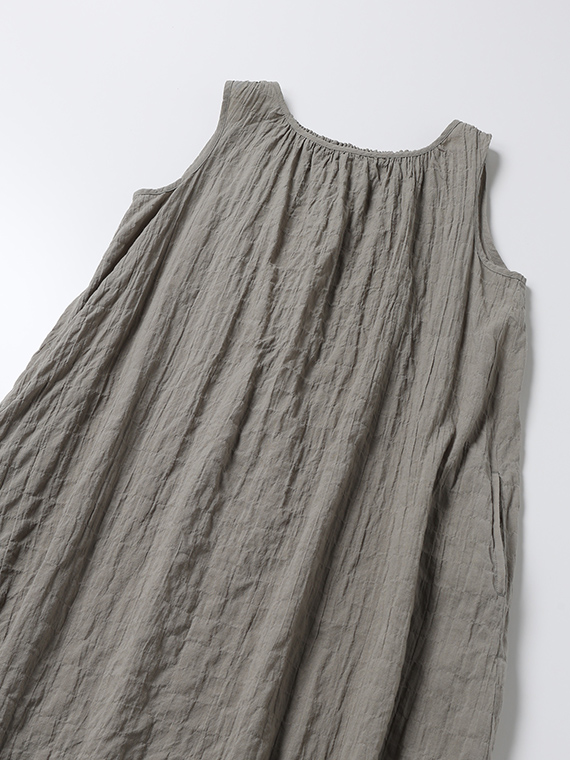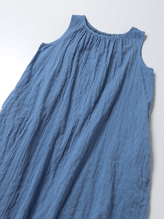 ネックラインのシャーリングが柔らかなドレープを生み、涼やかで女性らしいシルエットに仕上げました。