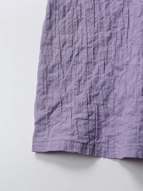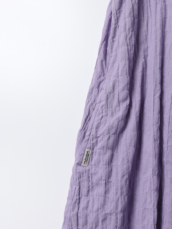 オーガニックコットン40/1を使用したガーゼシャーリング素材です。有機栽培の原料を使用することで、地球にも人にも優しい素材が出来上がりました。オーガニックコットンは通常のコットンより吸湿性や通気性に優れており、ソフトで膨らみある風合いが特徴です。柔らかいガーゼ織りにシャーリングの表面感をもたらし、より立体感のあるエアリアルな仕上がりです。優しい発色と膨らみある風合いも特徴です。