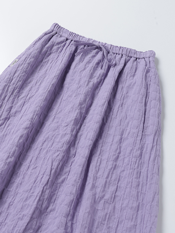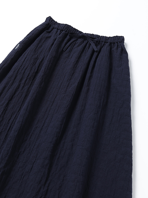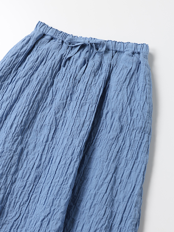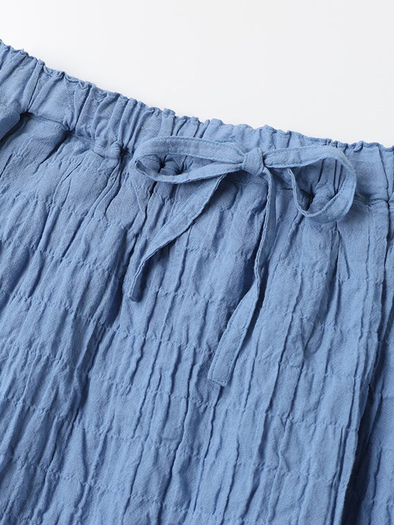 ふんわりと広がるシルエットが涼しげで、夏らしい着こなしが叶います。裏付き、ウエストゴム+共紐仕様で履き心地も快適。