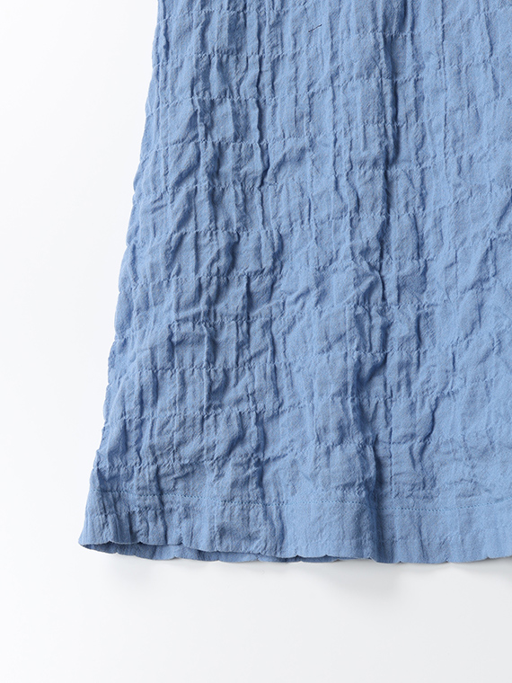 オーガニックコットン40/1を使用したガーゼシャーリング素材です。有機栽培の原料を使用することで、地球にも人にも優しい素材が出来上がりました。オーガニックコットンは通常のコットンより吸湿性や通気性に優れており、ソフトで膨らみある風合いが特徴です。柔らかいガーゼ織りにシャーリングの表面感をもたらし、より立体感のあるエアリアルな仕上がりです。優しい発色と膨らみある風合いも特徴です。