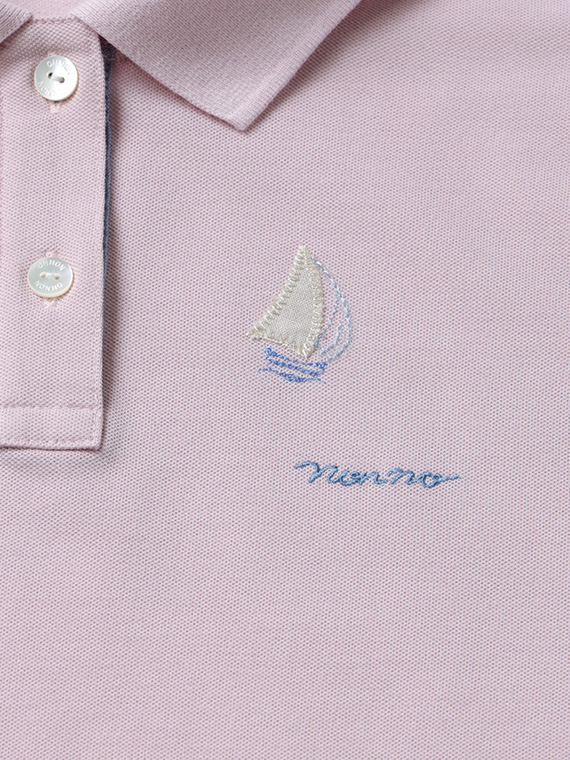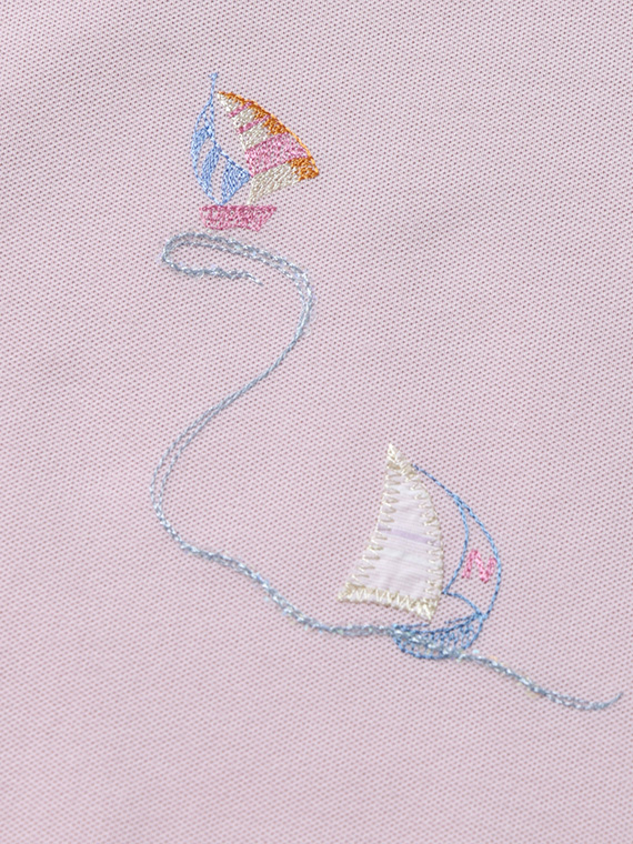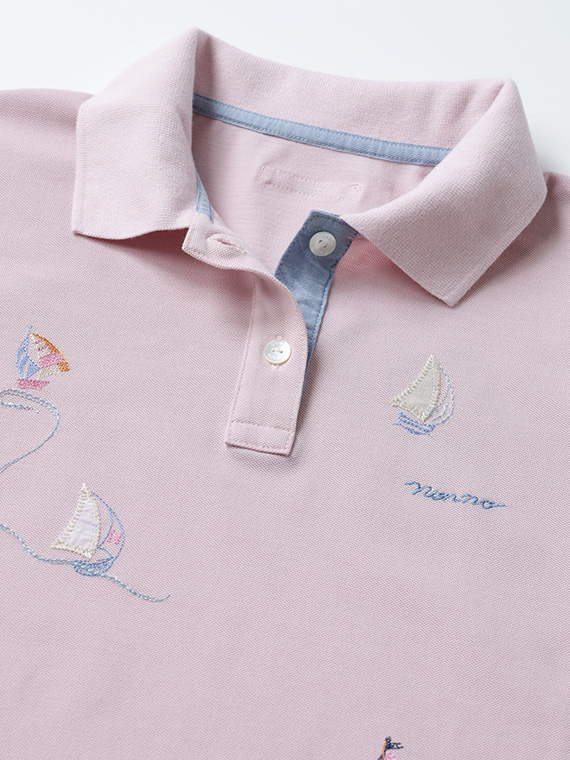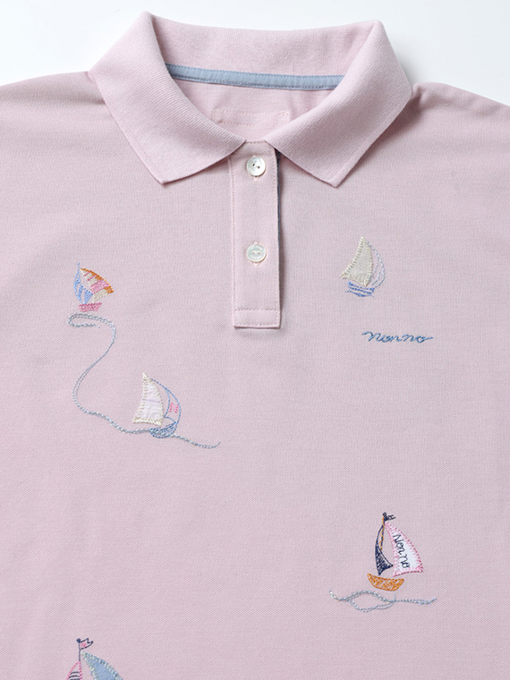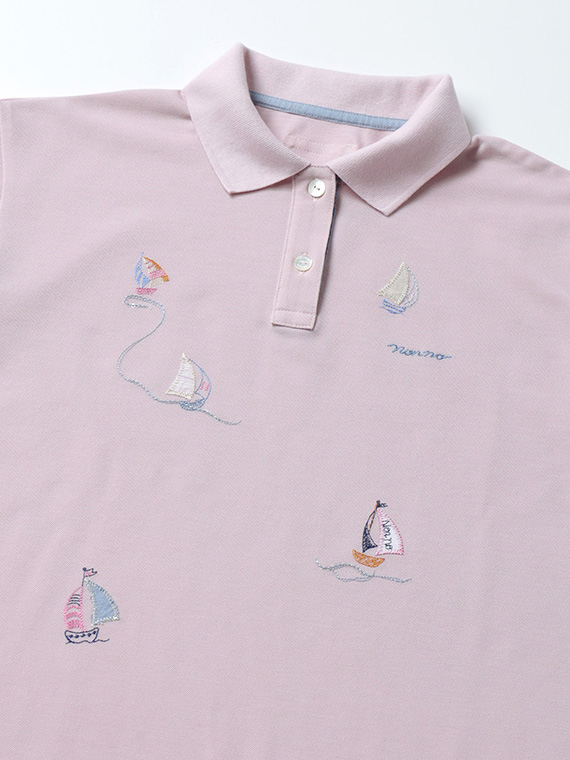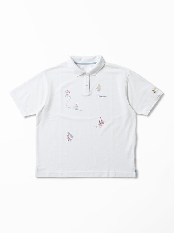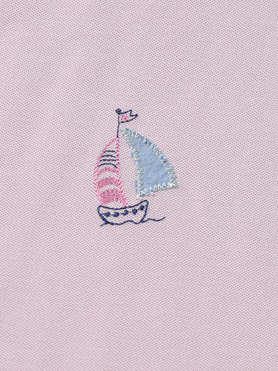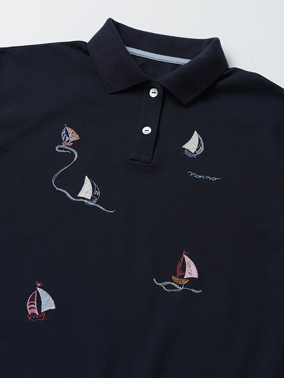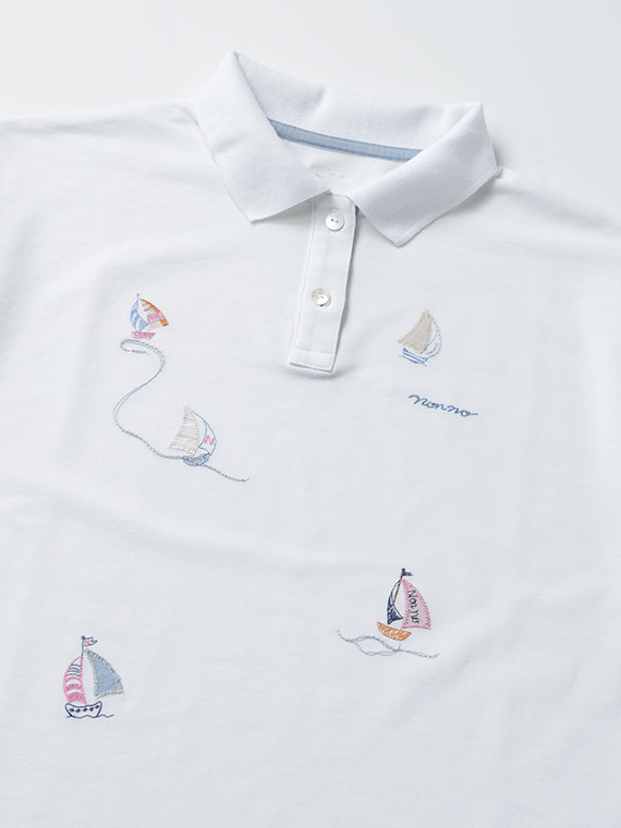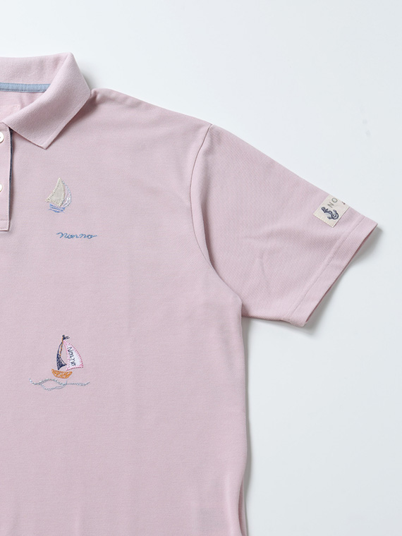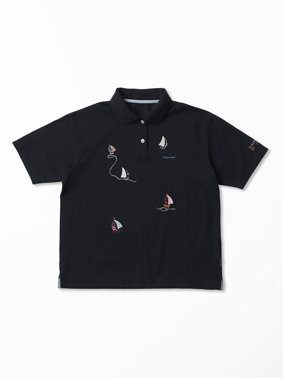 クールマックスエコメイド鹿の子 ヨット柄アップリケ刺繍入りポロシャツ
