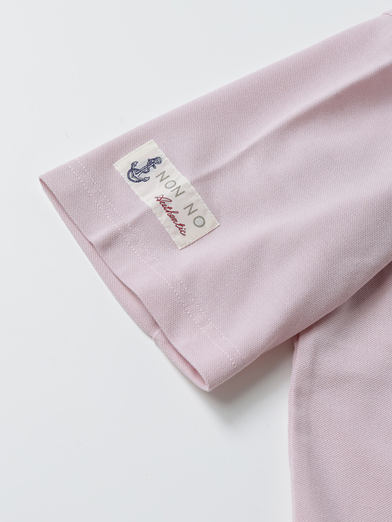 綿とポリエステル(クールマックスエコメイド)を混紡した糸を使用した鹿の子素材です。糸を異形断面構造にすることにより高い吸水力と速乾性を兼ね備えていて、汗を吸い、蒸れがべたつきを抑えてドライな着心地を保つことが出来ます。ポリエステルは再生ポリエステルを使用しており、環境にも優しい素材に仕上がっています。