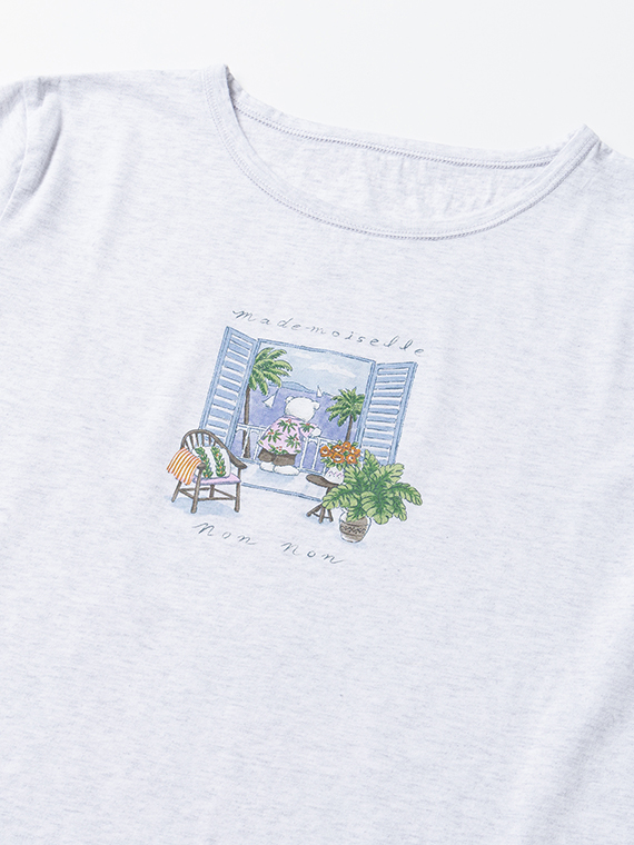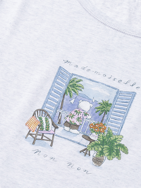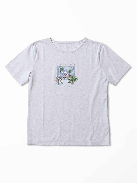 シルキースキンタッチ天竺 リゾートクマプリントTシャツ