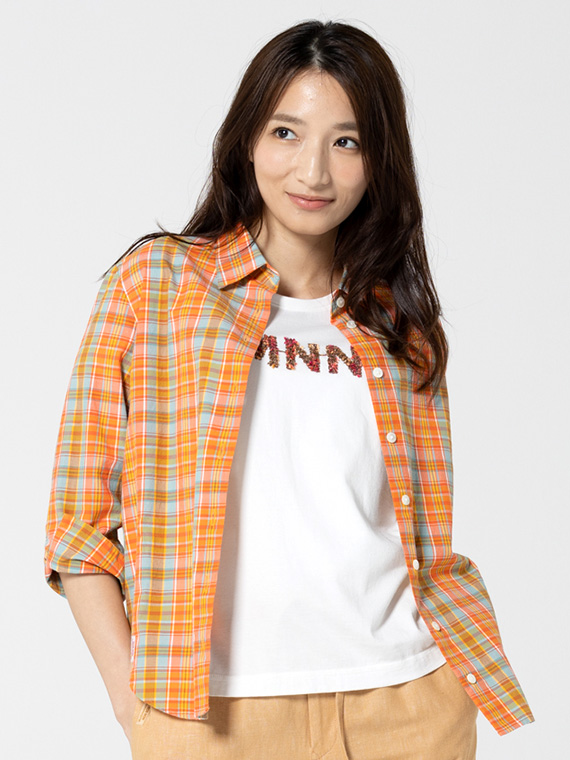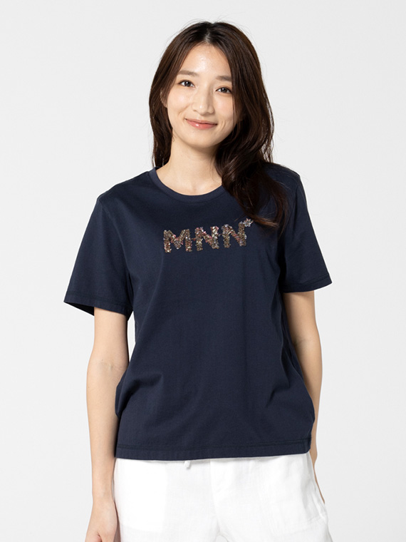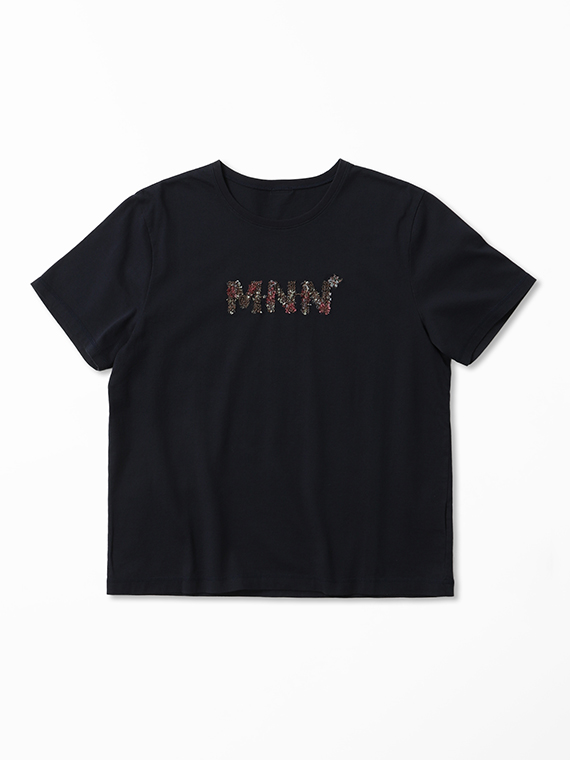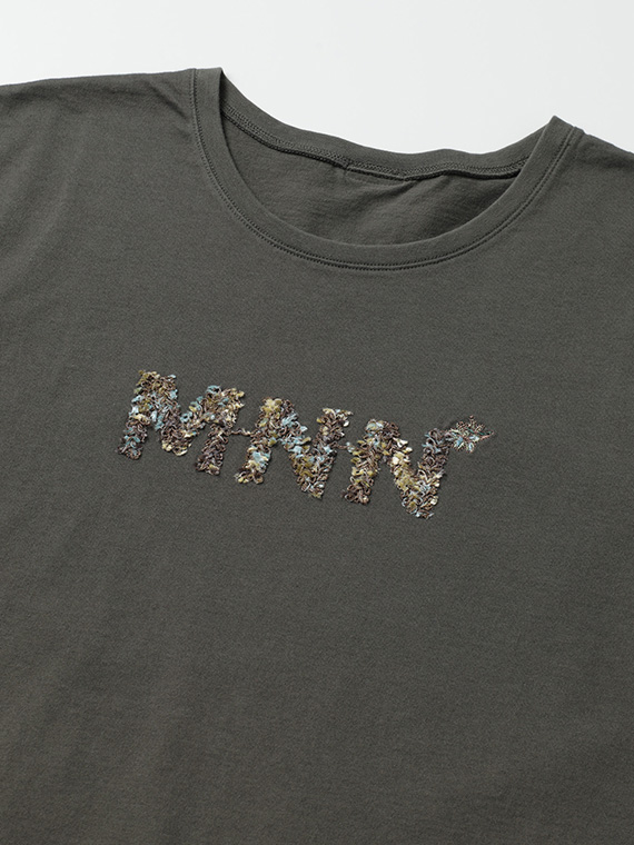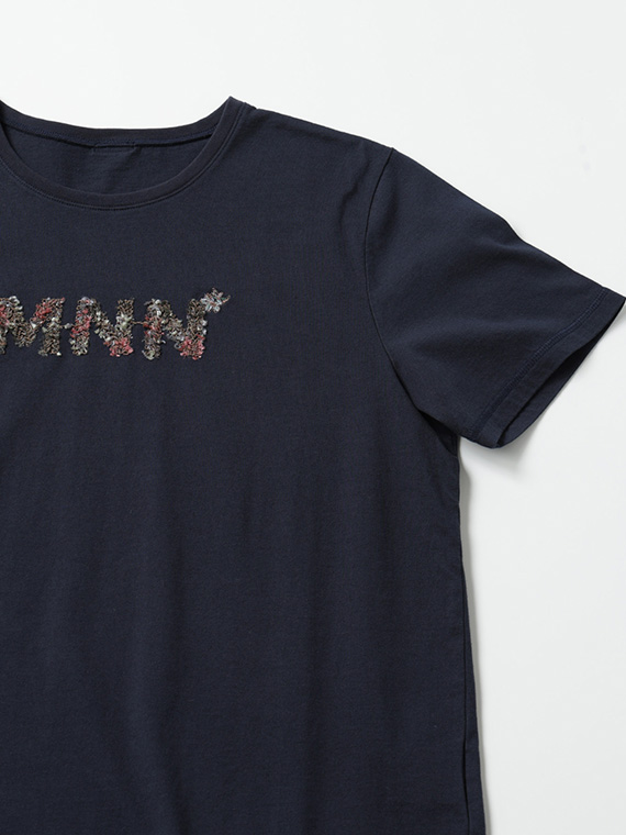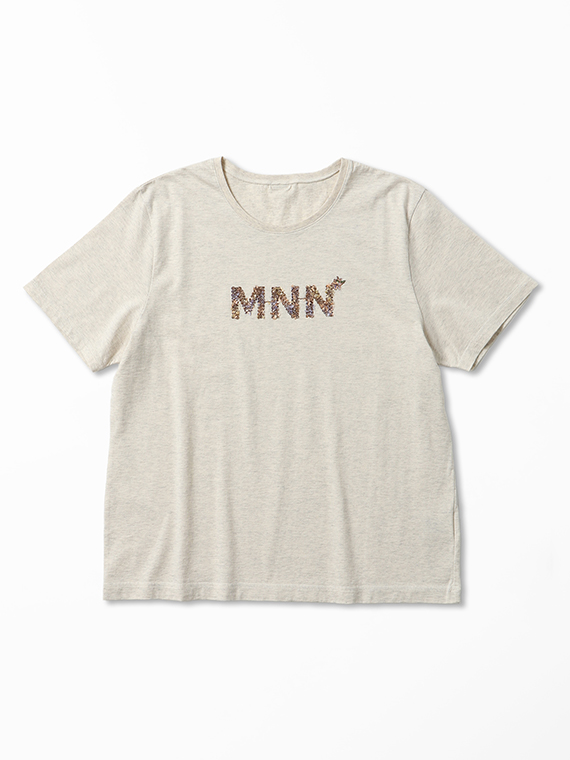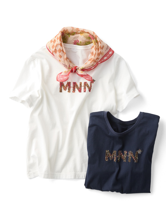 前身頃にはMNNロゴとフラワーを、意匠糸刺繍と4色刺繍で立体的に表現しました。