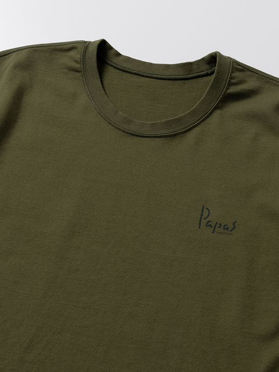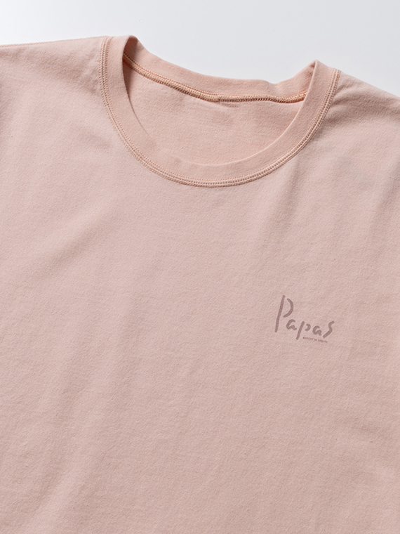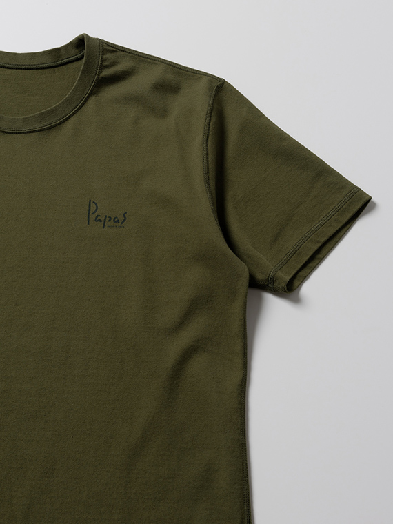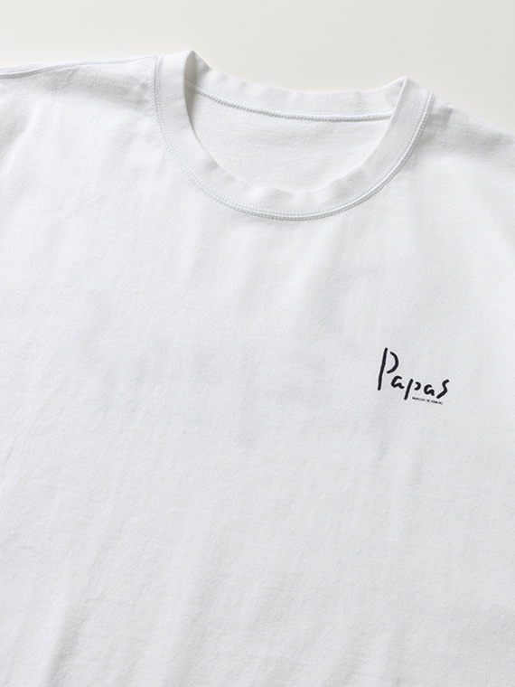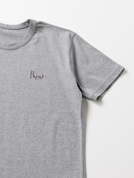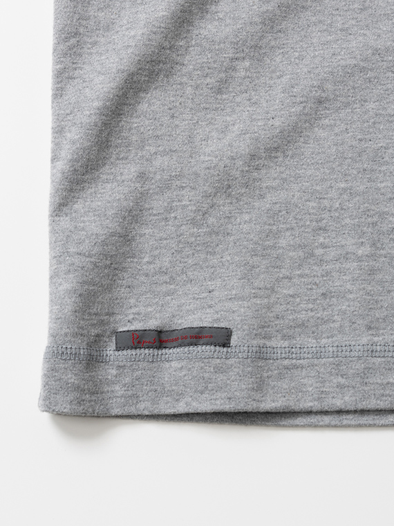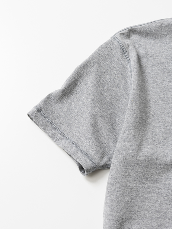 素材は定番の40/2天竺にコーマ糸を使用。コーマ工程により短い繊維を取り除くことで、なめらかで毛羽立ちにくく、丈夫な糸に仕上げています。さらに2本の糸を撚り合わせて編むことで、斜行しにくく安定感のある生地に。長年使い続けられている定番素材ならではの、安心感と安定したクオリティが魅力です。毎シーズン変わらない着心地の良さをお楽しみいただけます。