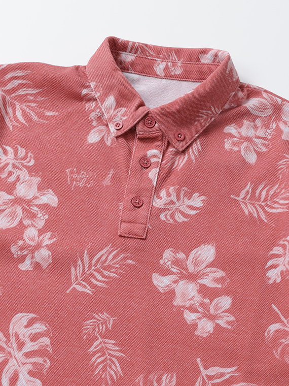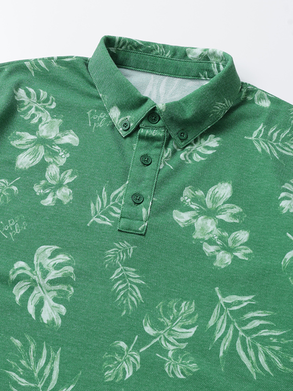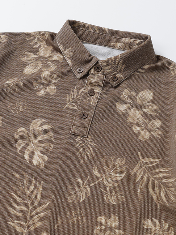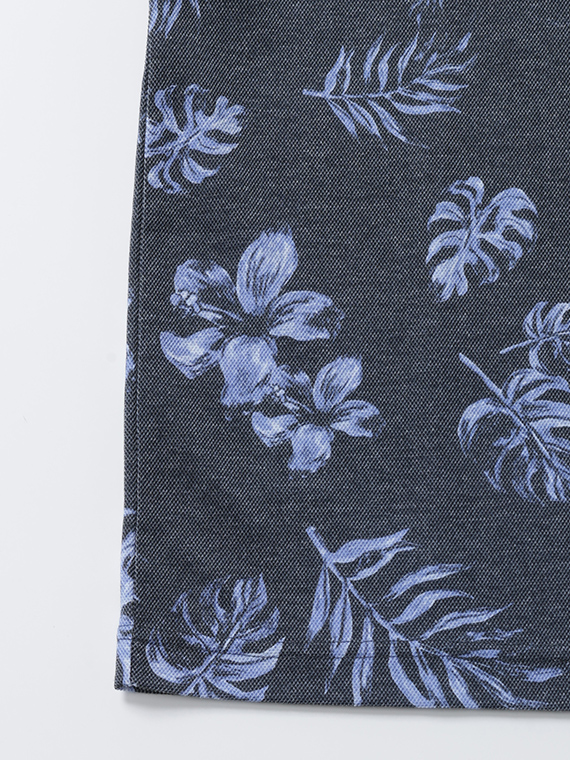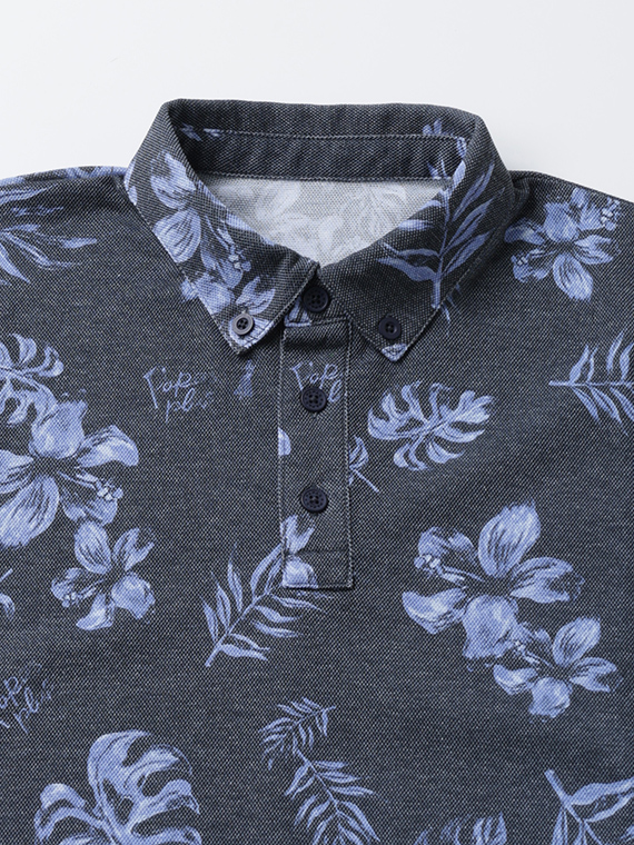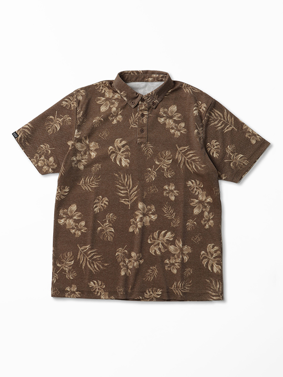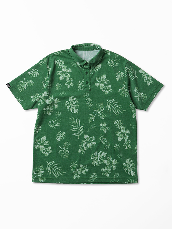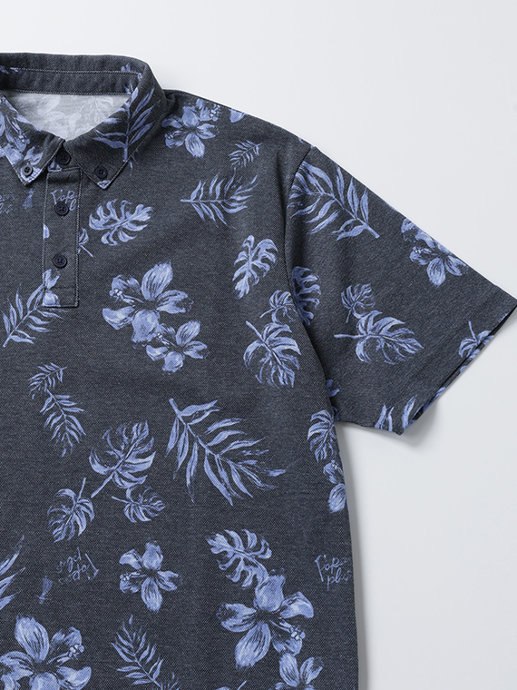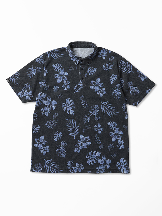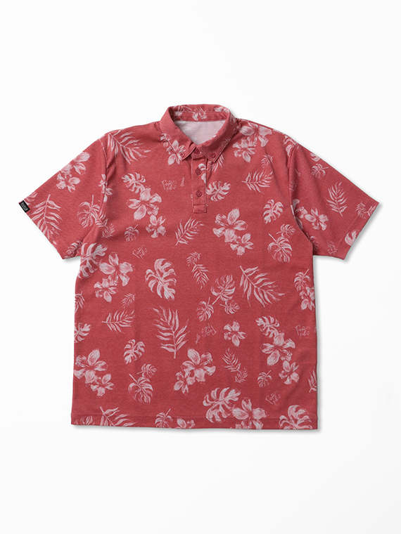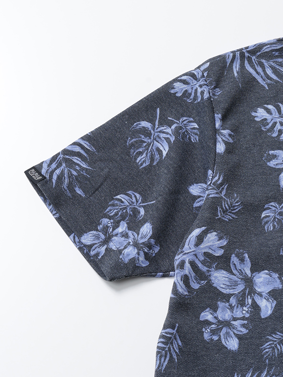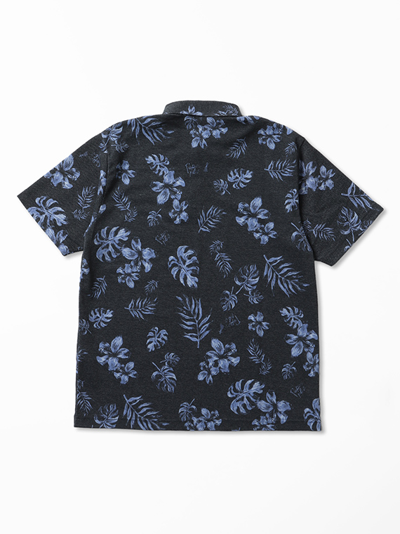 綿とポリエステルの混紡による鹿の子素材を使用。組織と加工により、ストレッチ性とキックバック性を兼ね備えた快適な着心地が魅力です。プリントは繊細な表現が可能なインクジェットプリントで仕上げ、さらにシルケット加工を施すことで、ほどよい光沢感と滑らかな風合いをプラス。他のゴルフメーカーでも採用実績のある、機能性と見た目を両立した素材です。
