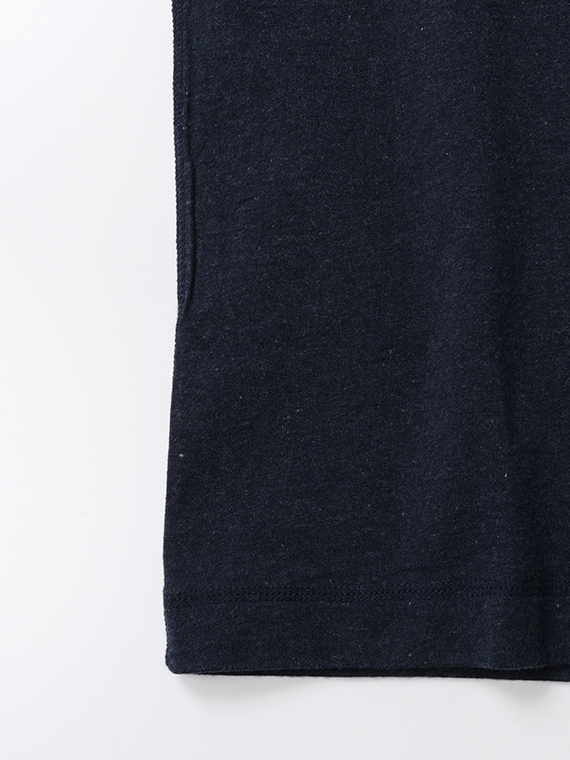 前回に続きRE PAPAS PROJECTでお客様からの回収した製品をリサイクル綿を活用させていいただいており、カットソーの産地の和歌山で編み立て、大阪の染工場にてセットと仕上げをしております。リサイクル糸ならではの風合いが特徴になっています。