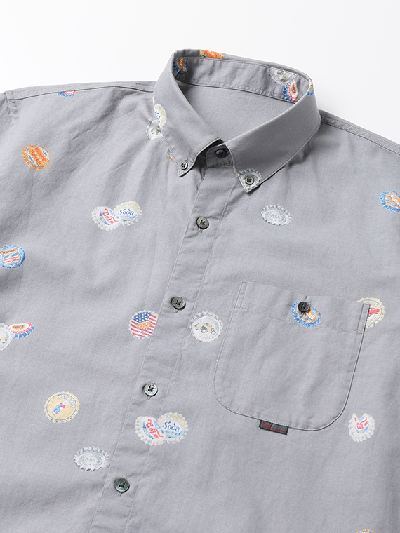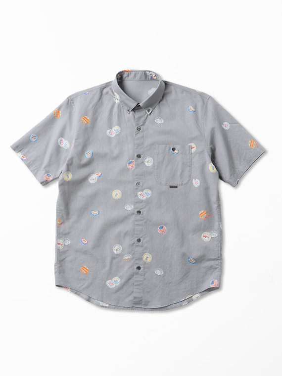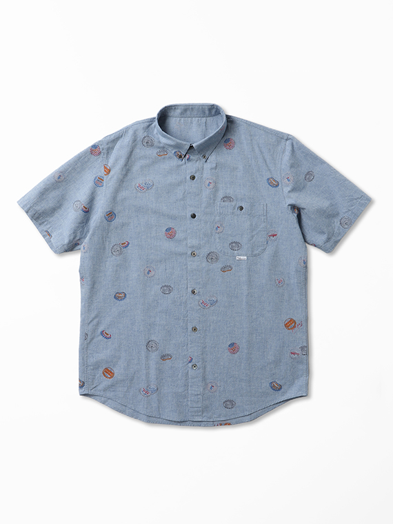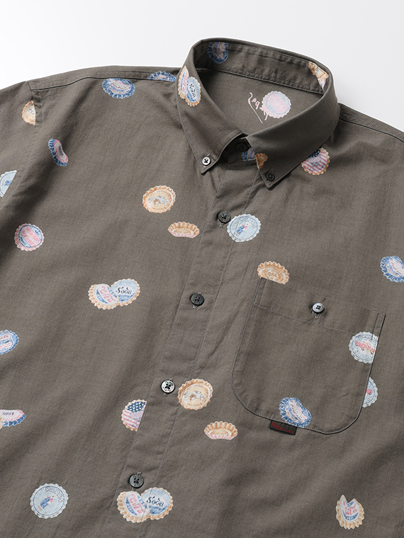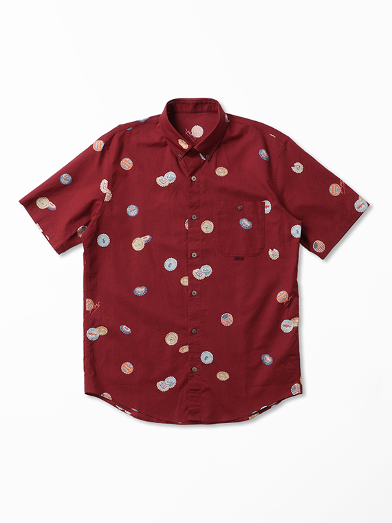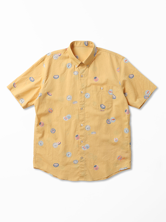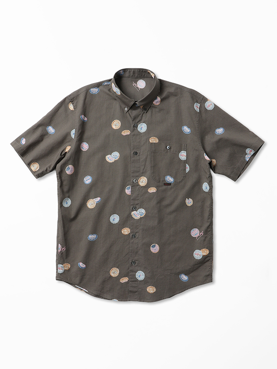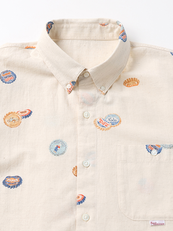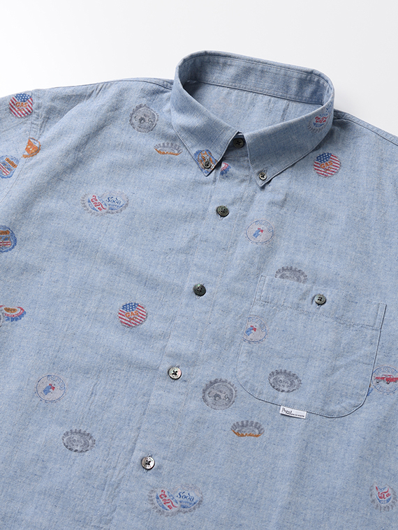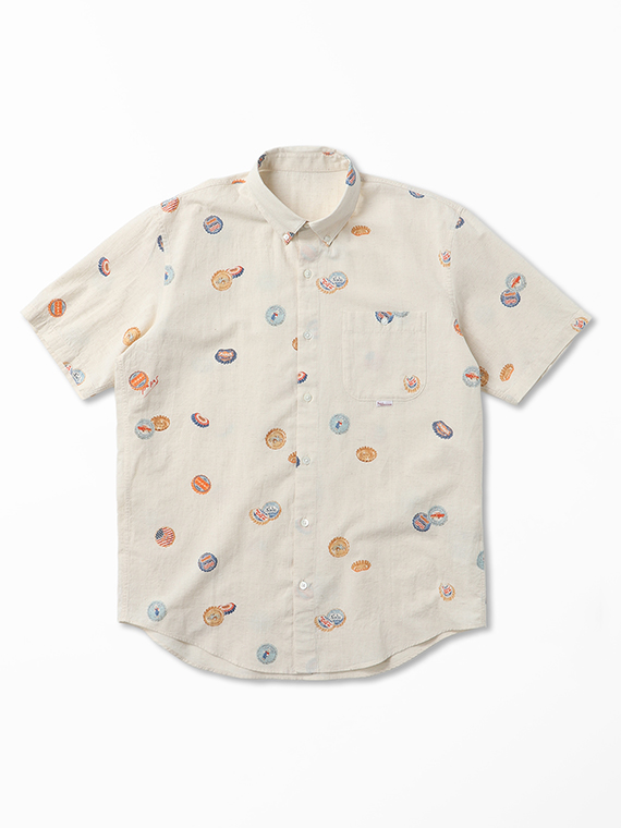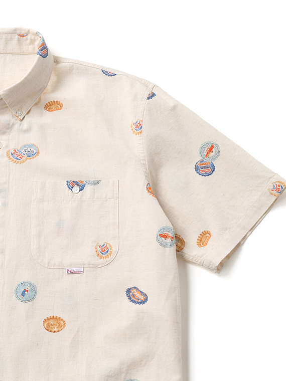 コットン/リネンキャンブリック プリント半袖シャツ