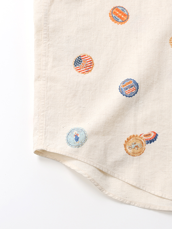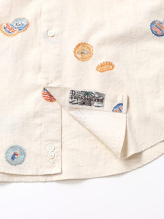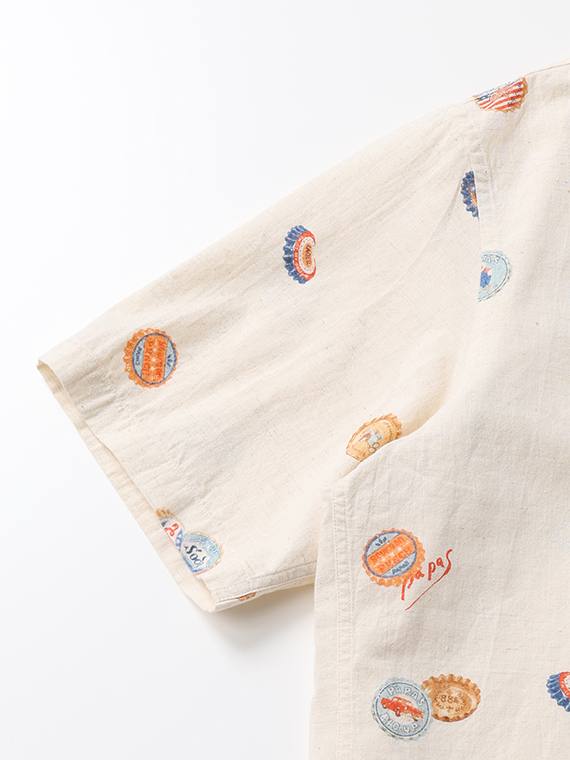 素材は柔らかなコットンリネンキャンブリックを下生地に使用し、コットンのやさしい肌触りとリネンの軽やかさを兼ね備え、春夏に心地よい着用感を楽しめます。さらりとした風合いとナチュラルな表情が、プリント柄の魅力をより引き立てます。
