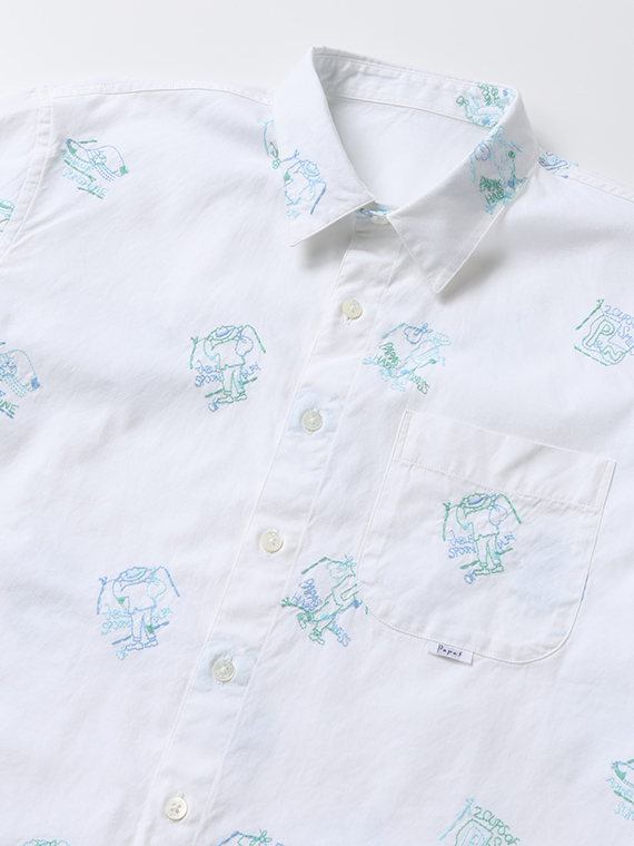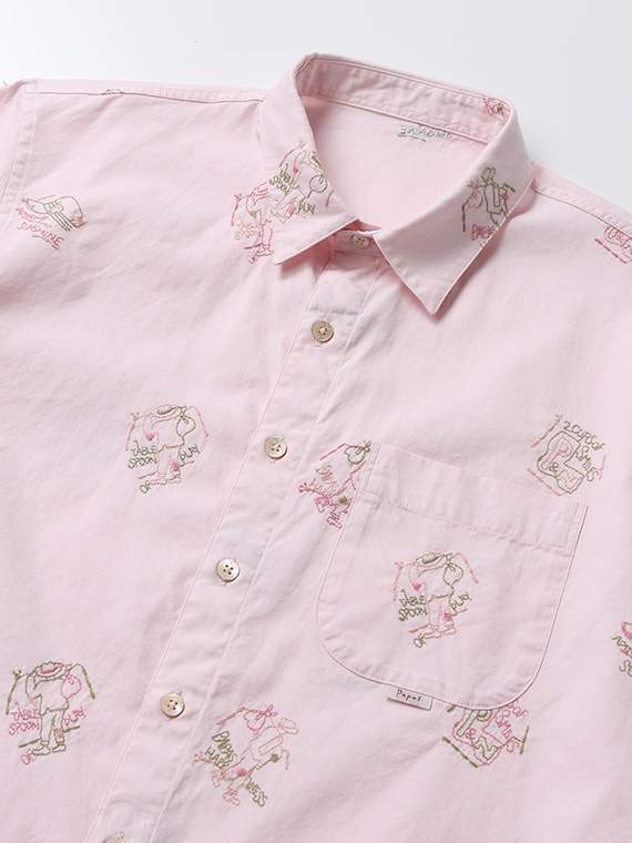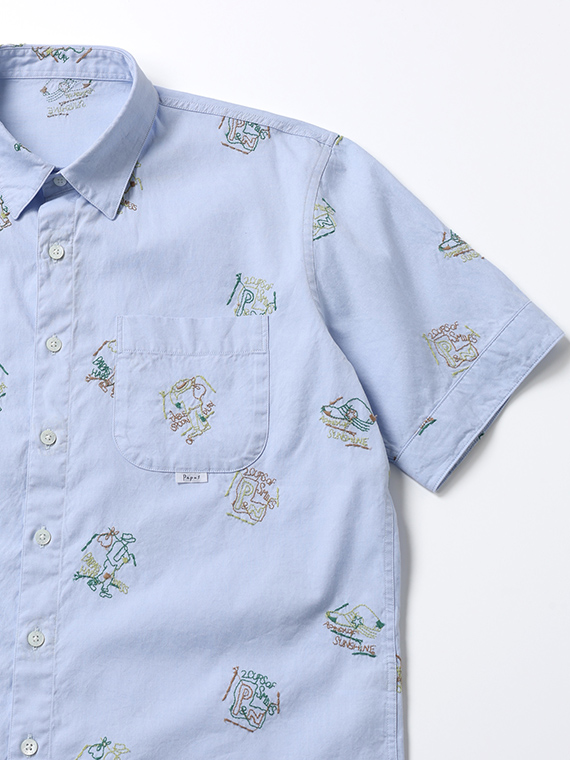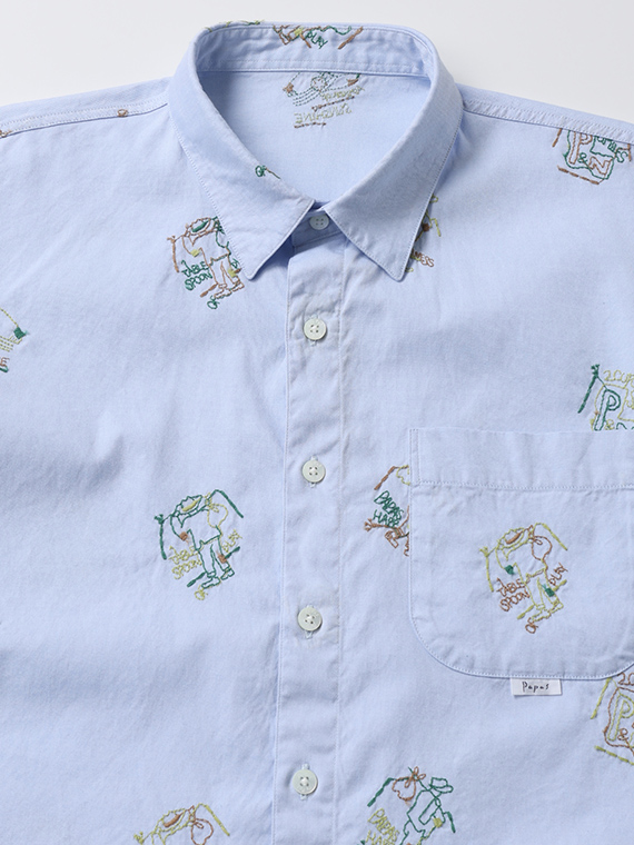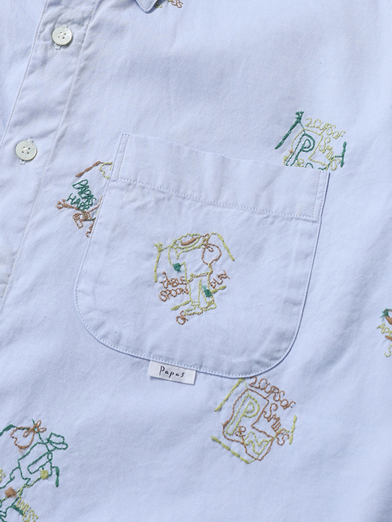 Papas40周年記念 80/2ピンオックス 刺繍半袖シャツ