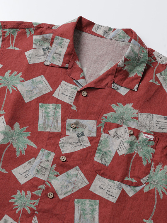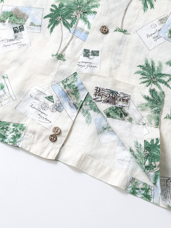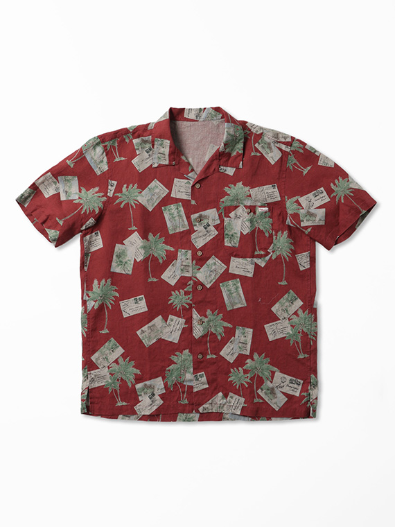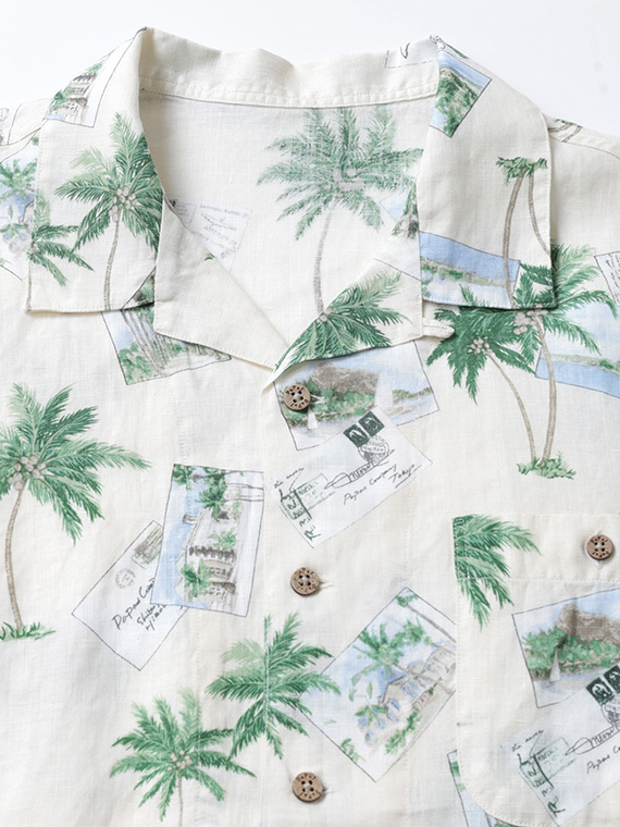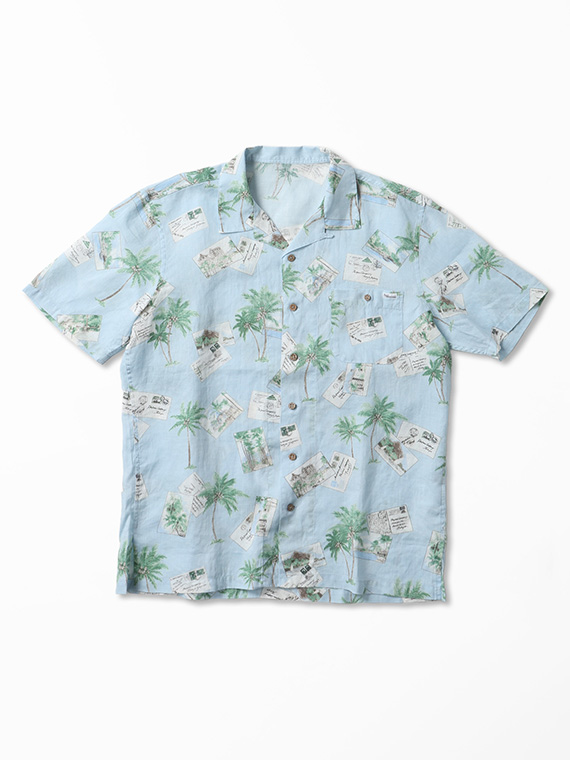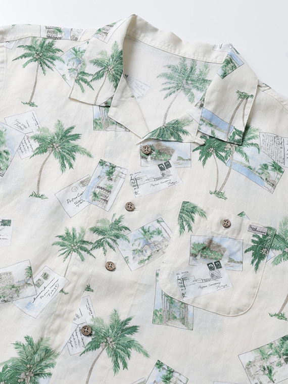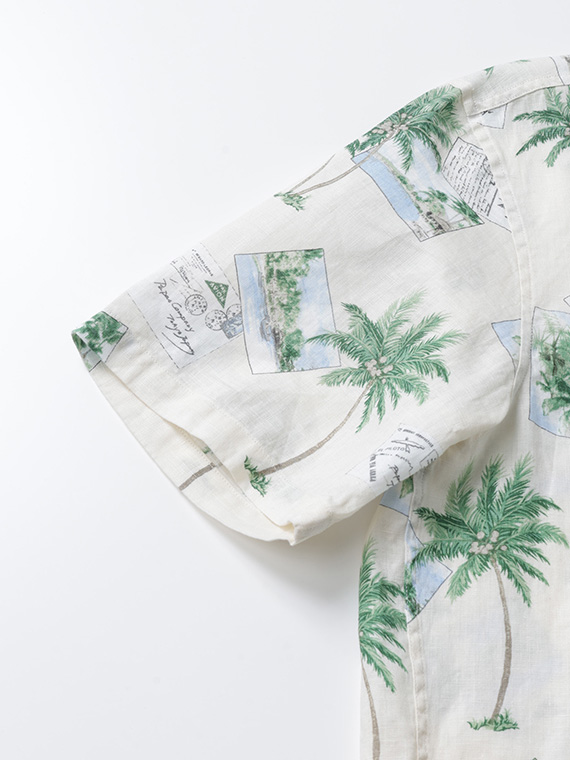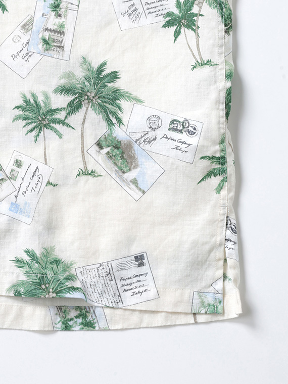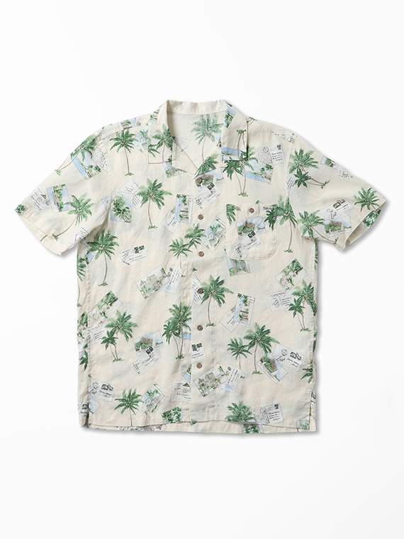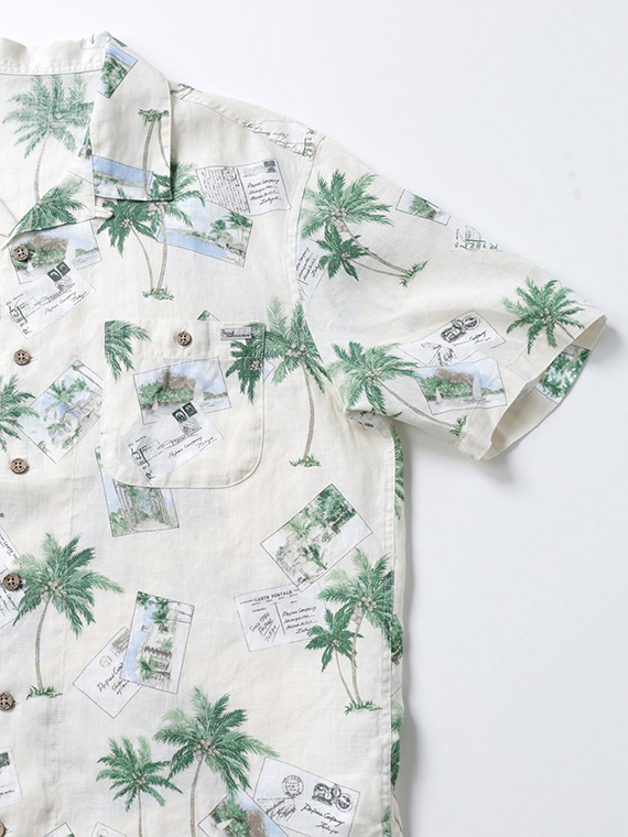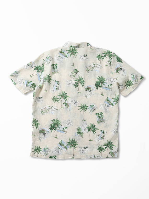 60/1リネン パームツリー&ポストカードプリント半袖シャツ