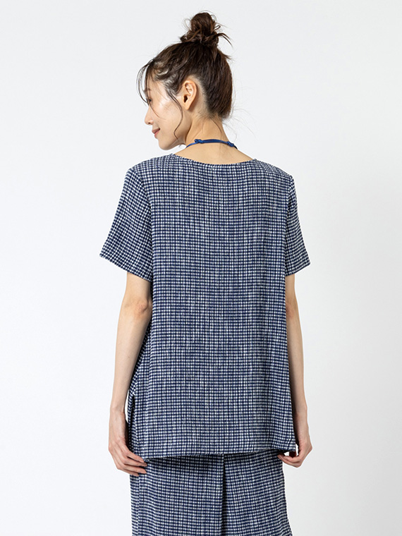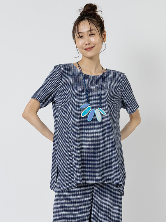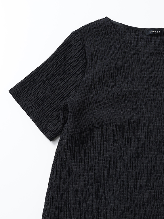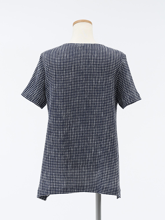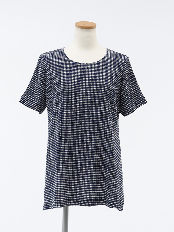 一見シンプルなシルエットに見えますが、実は胸元にダーツを施すことで、お体のラインをひろいすぎず、立体的に包み込むような絶妙な形に仕立ててあります。