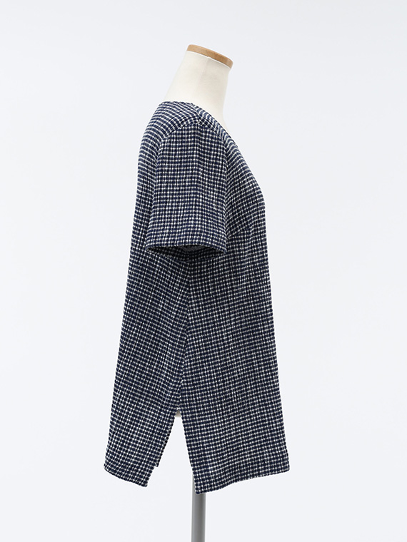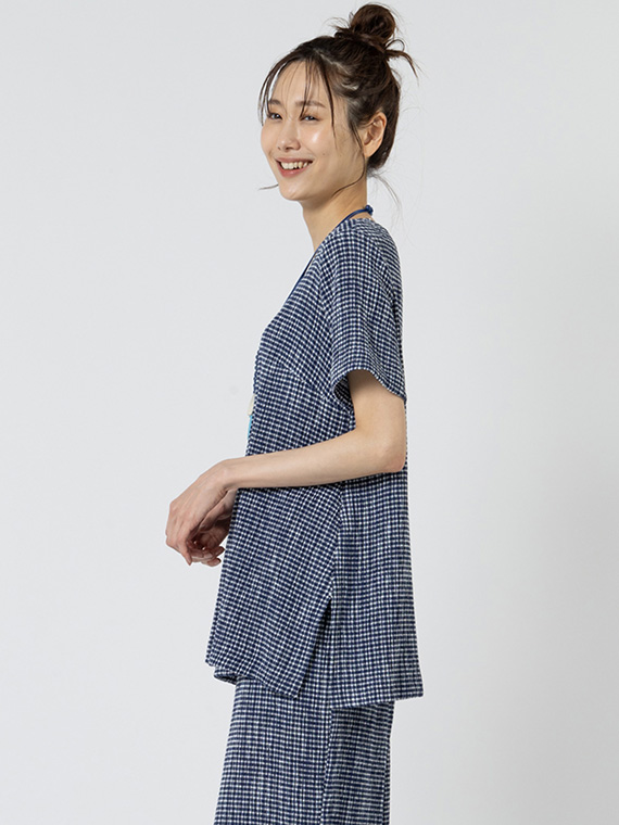 表面に現れる「楊柳(ようりゅう)シワ」は、糸の質と編みの組織を活かした加工によって生まれるもの。均一ではない、細かかったり大きかったりとランダムに現れるシワは、天然の造形美のような奥行きを感じさせ、一枚として同じ表情のものはございません。